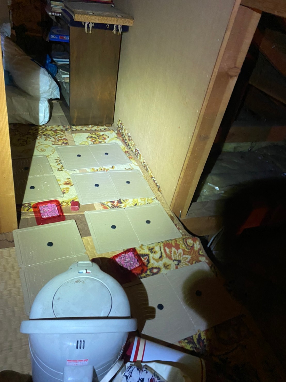 まずは、燻煙剤と呼ばれる薬剤を天井裏や床下に投入することで、イタチを追い出していきます。