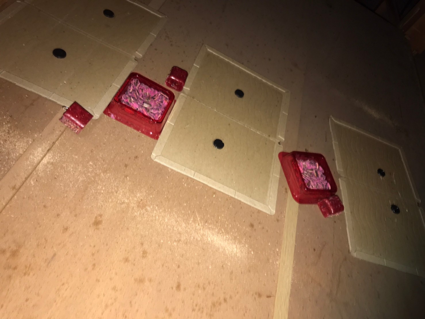封鎖作業の後は、糞清掃や殺菌・消毒、マーキング消臭、ノミ・ダニ駆除、毒エサ・トラップ設置といった残りの行程を順序良く行い、終了です。