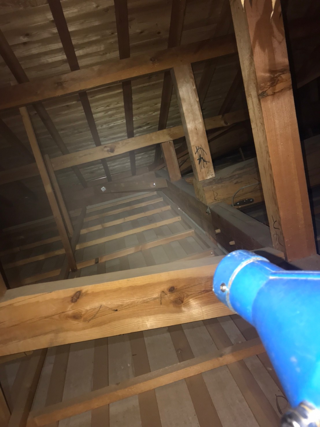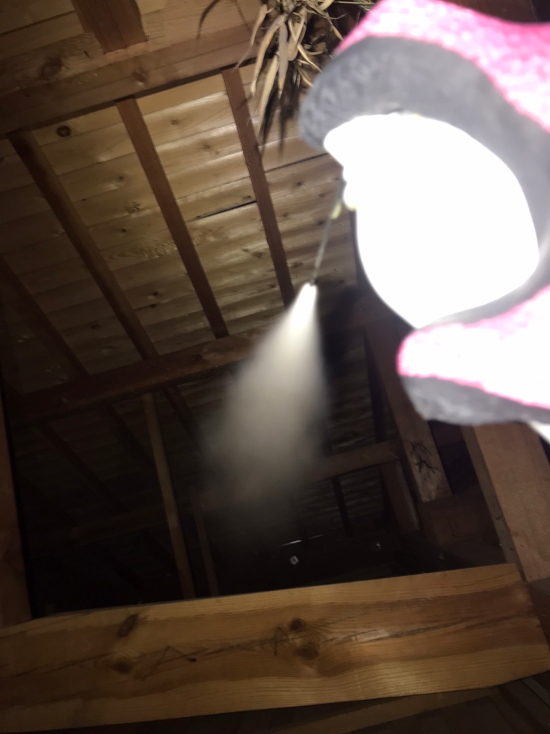 まずは、燻煙剤と呼ばれる薬剤を天井裏や床下に投入することで、コウモリを追い出していきます。