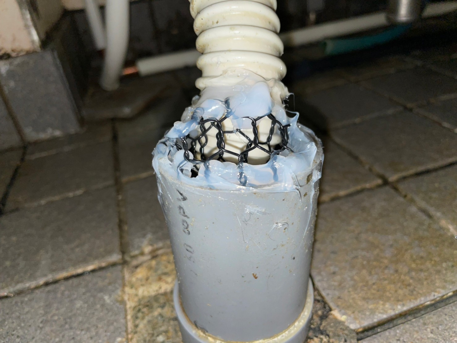 続いて、ネズミの再侵入を防ぐために、パンチングメタルや金網、コーキング剤などを用いて侵入経路の封鎖を行います。