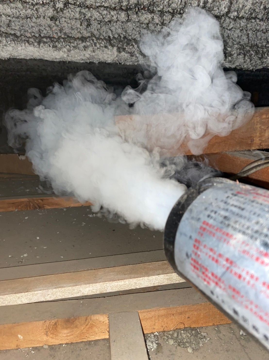 まずは、燻煙剤を使って屋内に潜んでいるネズミを追い出します。