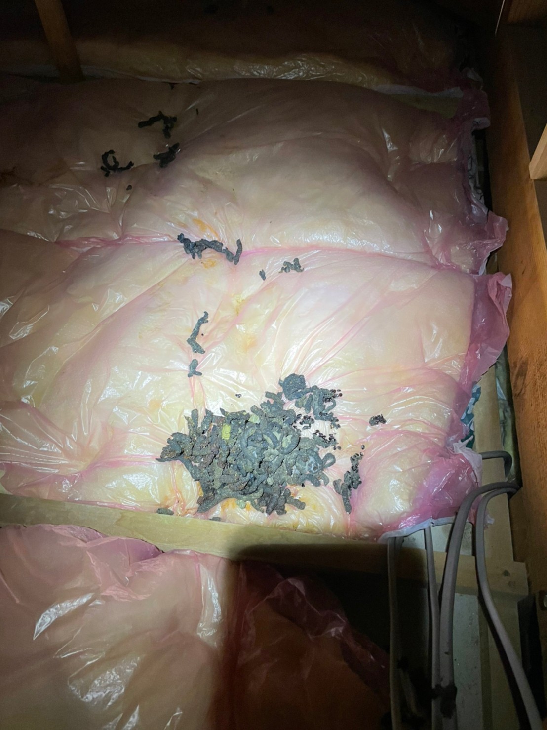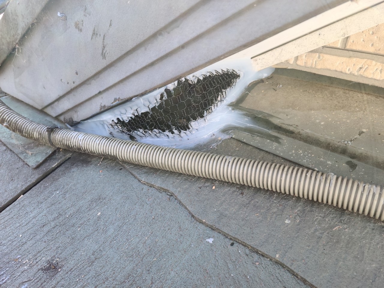 屋根の隙間やエアコン配管の隙間、外壁の隙間といった場所から、イタチが建物内へ侵入しており、ドタバタという足音や強烈な糞尿臭、ノミ・ダニ被害などの理由からお問い合わせをいただきました。