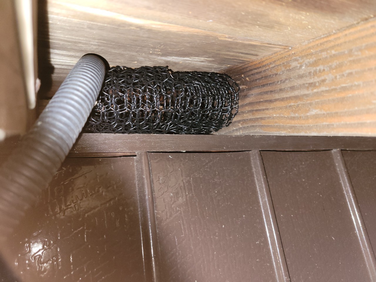 続いて、パンチングメタルや金網、コーキング剤などを用いて、あらゆる侵入経路を封鎖していきます。これによりイタチに限らず、他の害獣の再侵入も防ぐことができます。