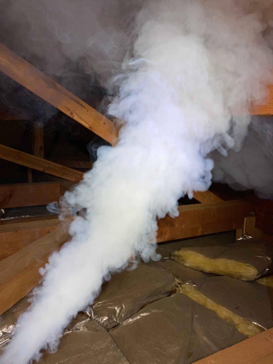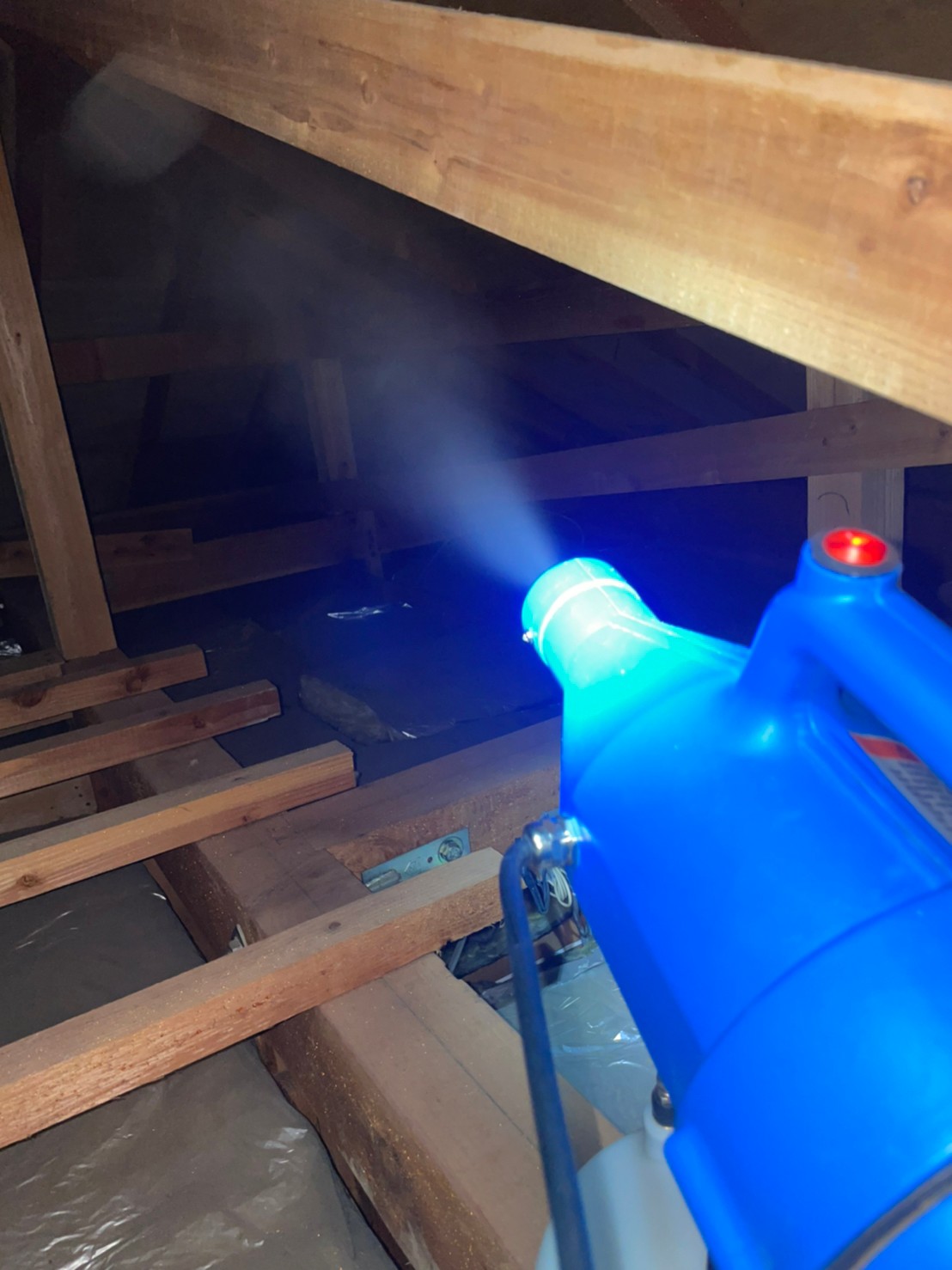 まずは、燻煙剤と呼ばれる薬剤を天井裏や床下に投入することで、コウモリを追い出していきます。