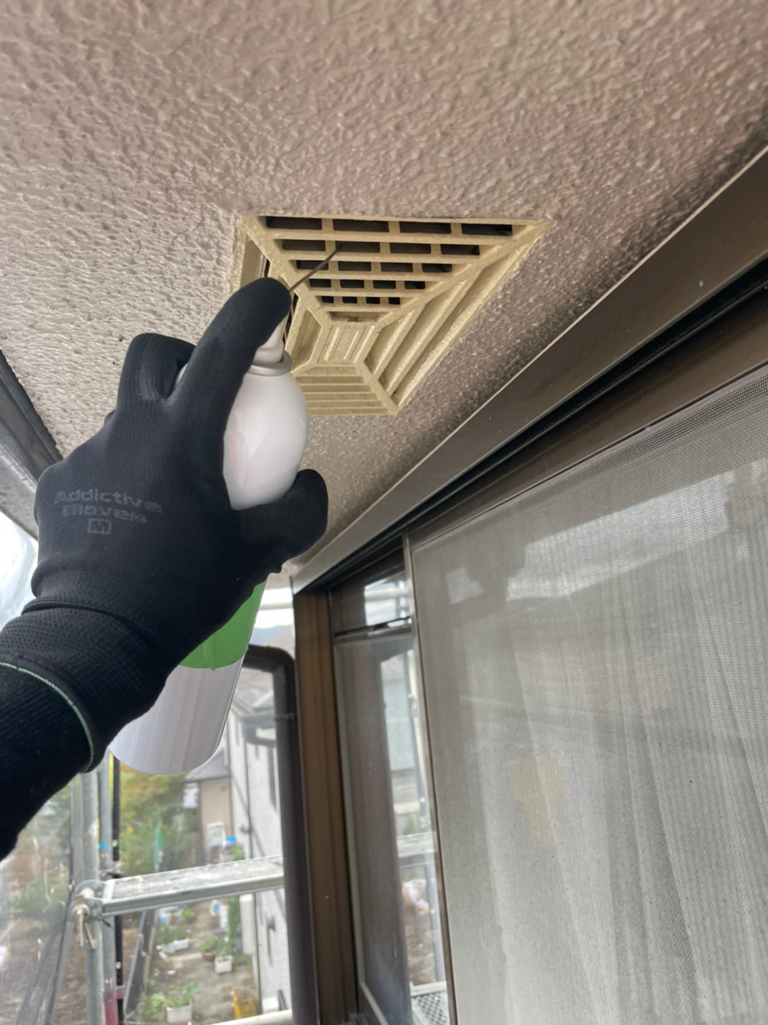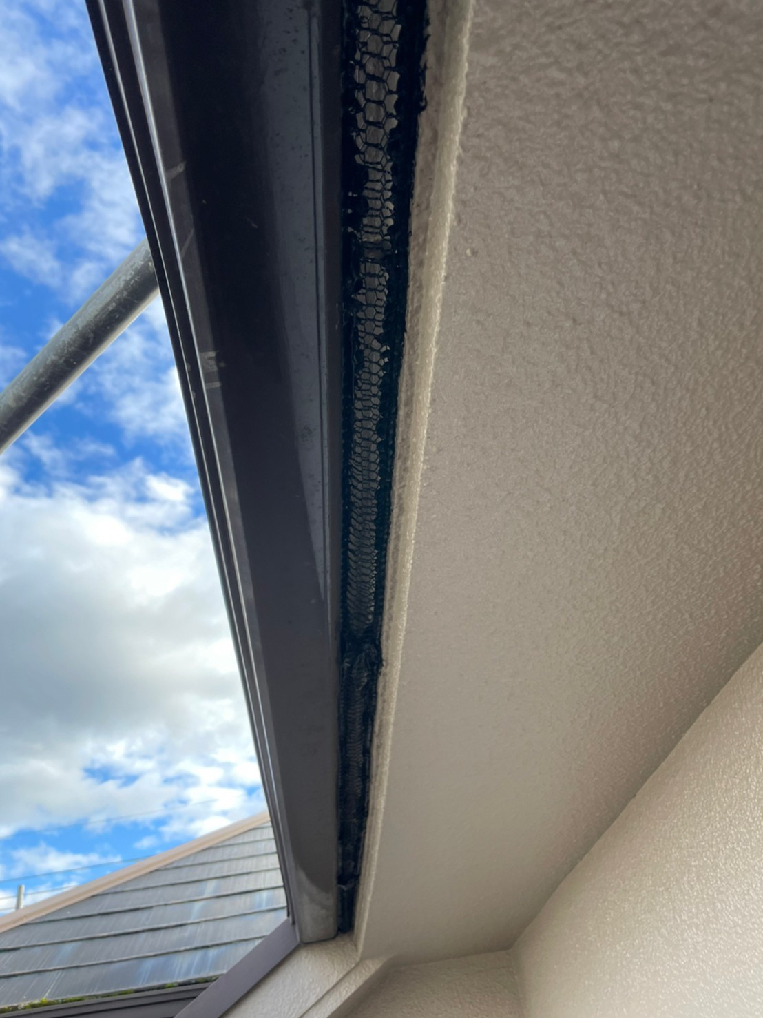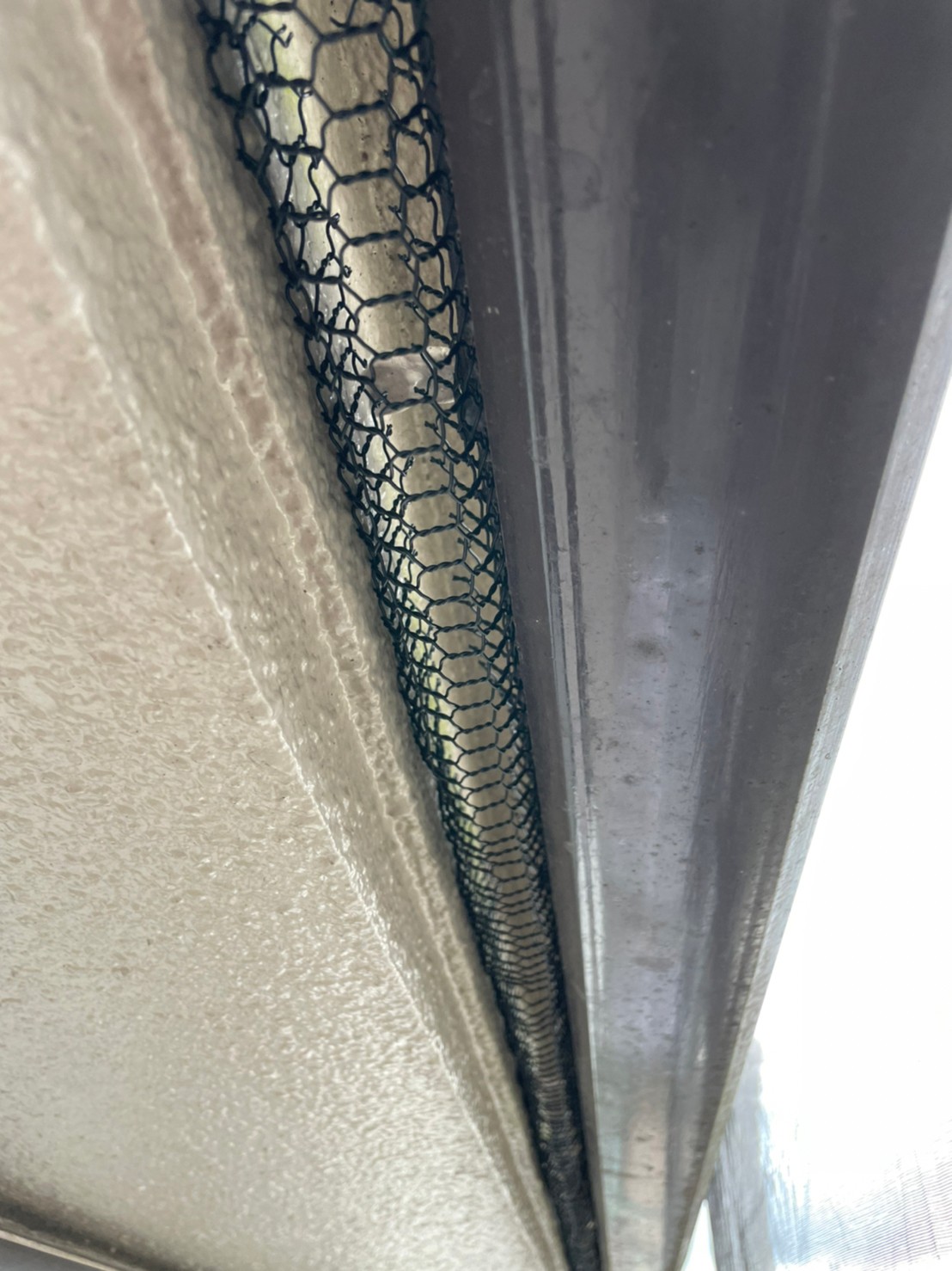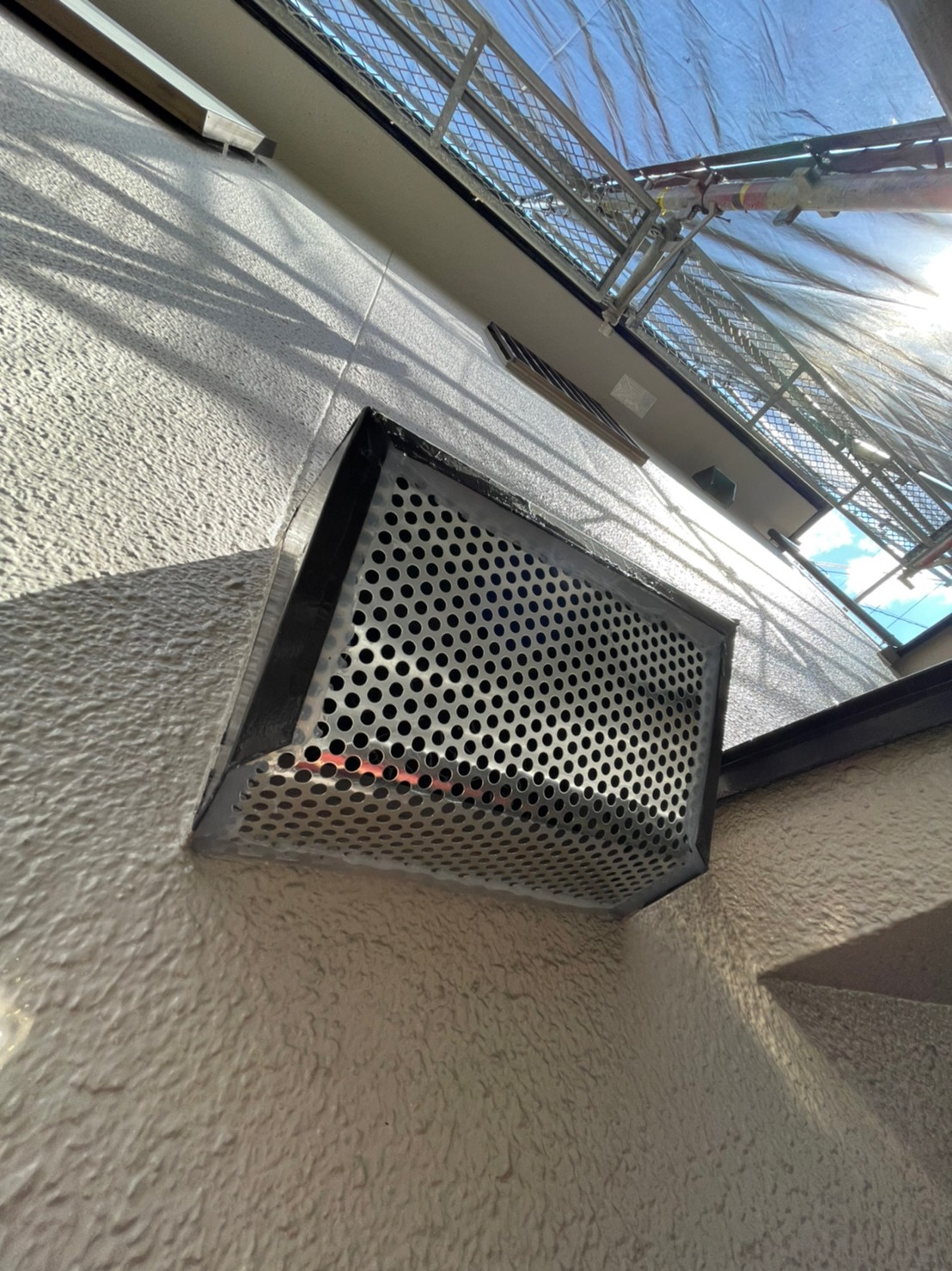 続いて、コウモリの再侵入を防ぐために、パンチングメタルや金網、コーキング剤などを用いて侵入経路の封鎖を行います。