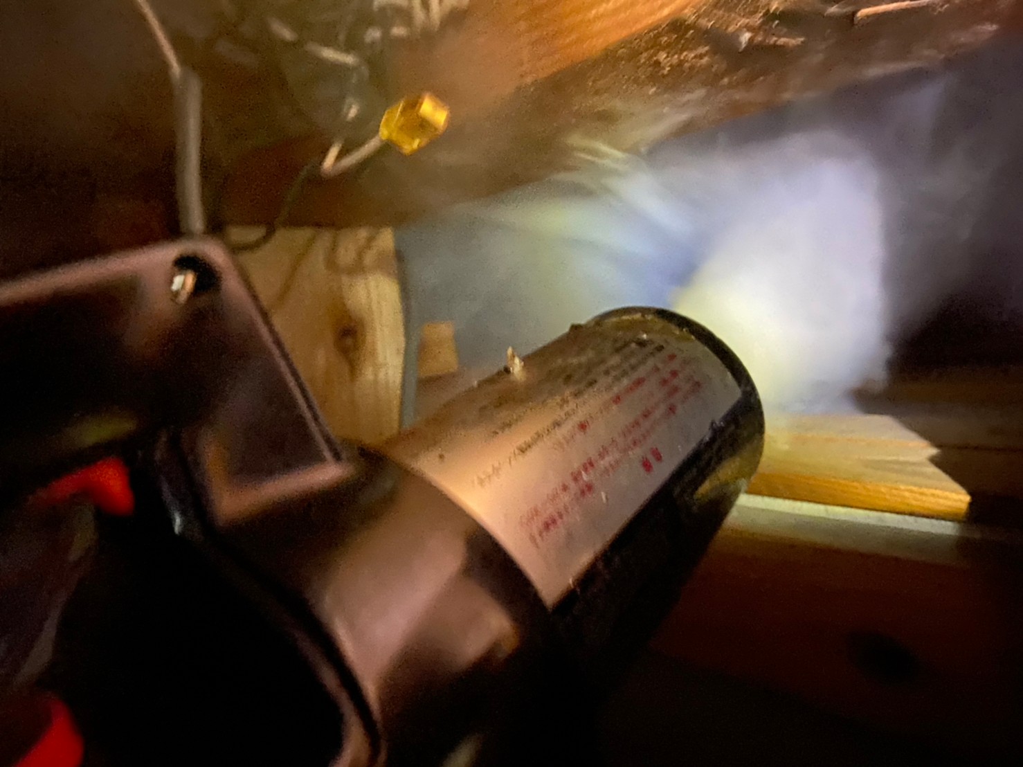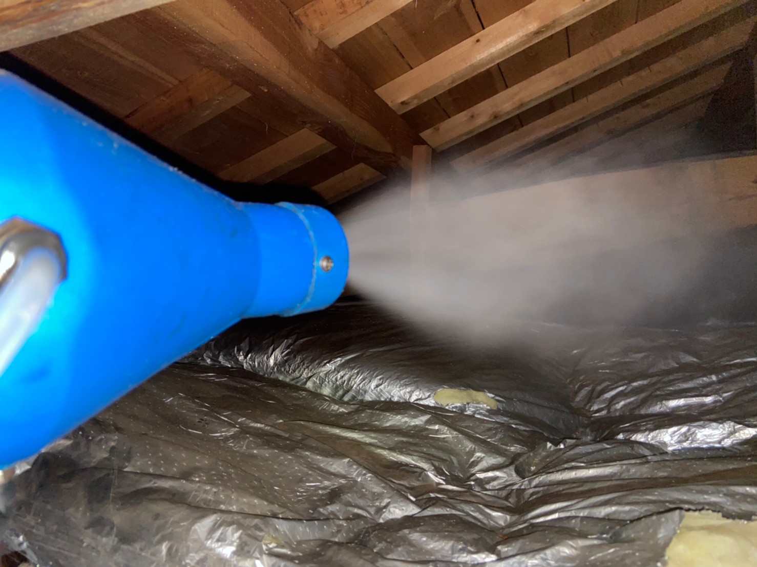 毒エサや粘着シートを設置し、ネズミを捕獲・駆除した後、くん煙剤をまんべんなく噴射し、徹底的に追い出し作業を行います。追い出したあとは、糞尿の処理や清掃と侵入経路対策を行い、終了です。