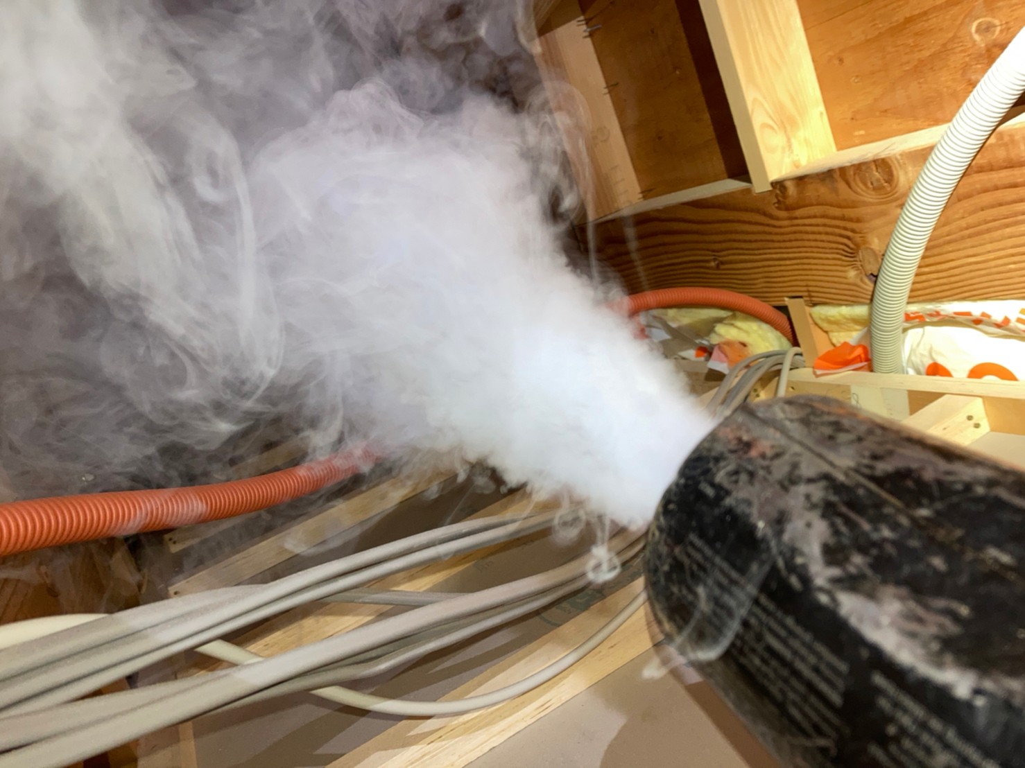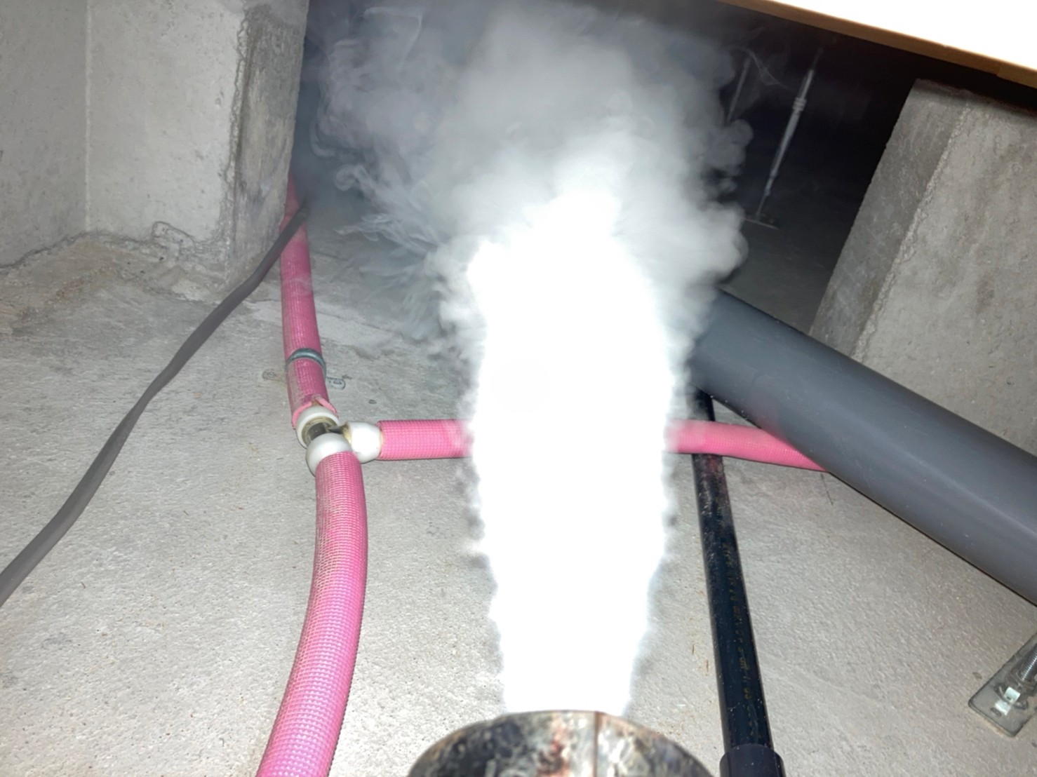 まずは、燻煙剤と呼ばれる薬剤を天井裏や床下に投入することで、ネズミを追い出していきます。