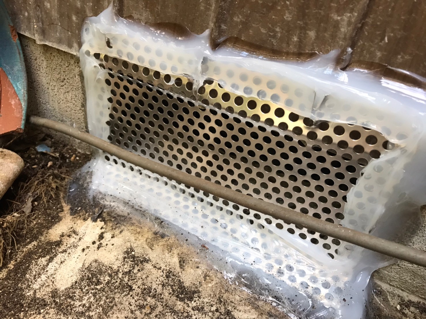 続いて、パンチングメタルや金網、コーキング剤などを用いて、あらゆる侵入経路を封鎖していきます。これによりネズミに限らず、他の害獣の再侵入も防ぐことができます。
