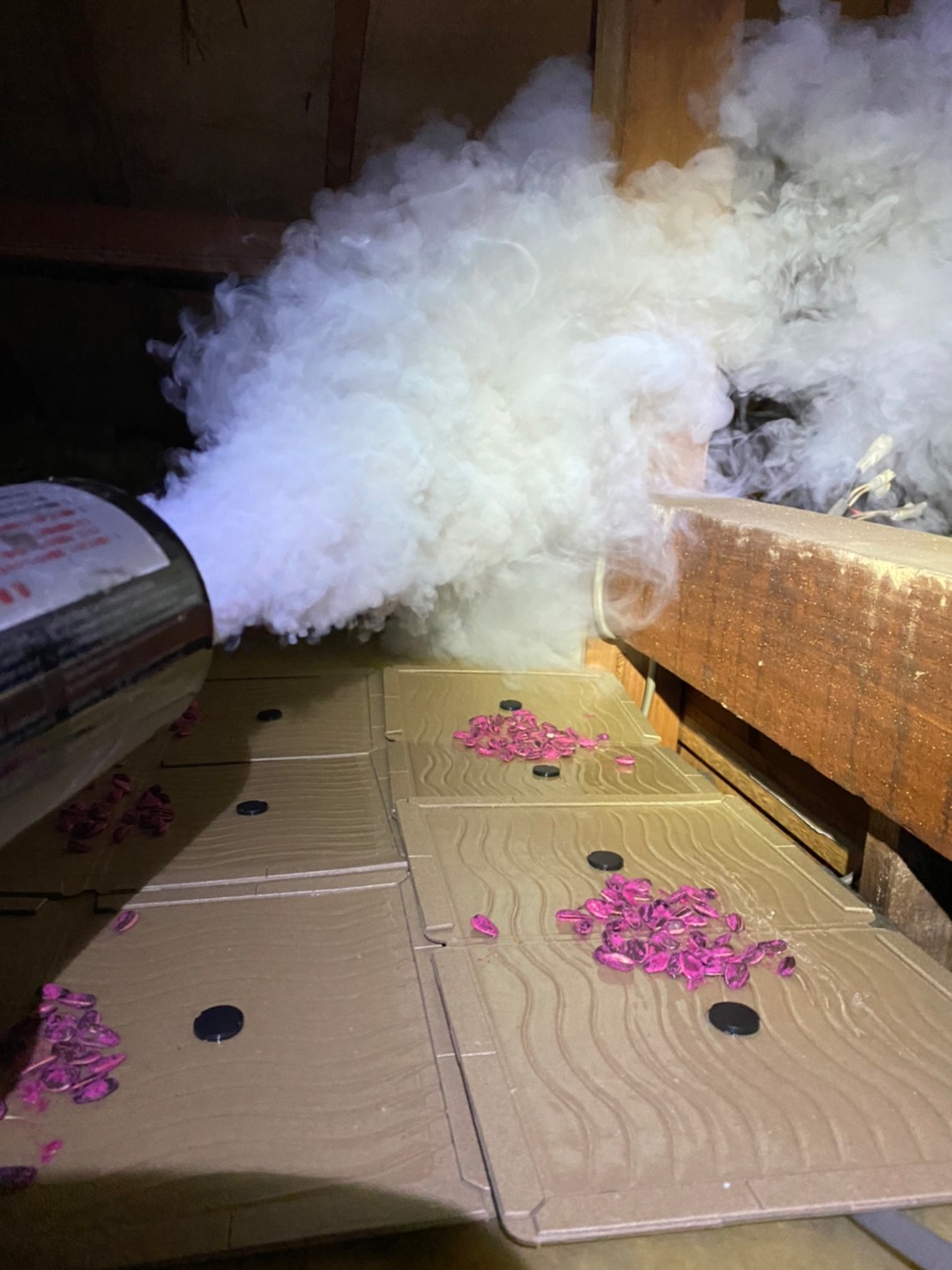 まずは、燻煙剤を使って屋内に潜んでいるネズミを追い出します。
