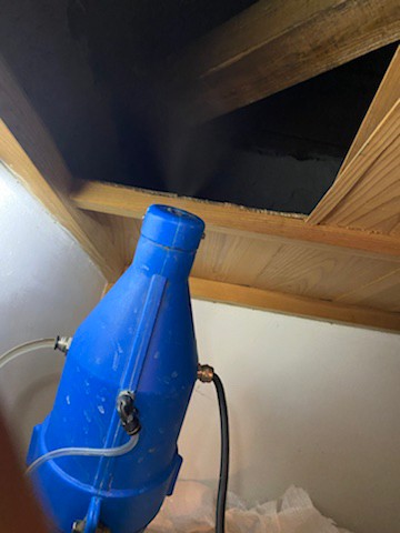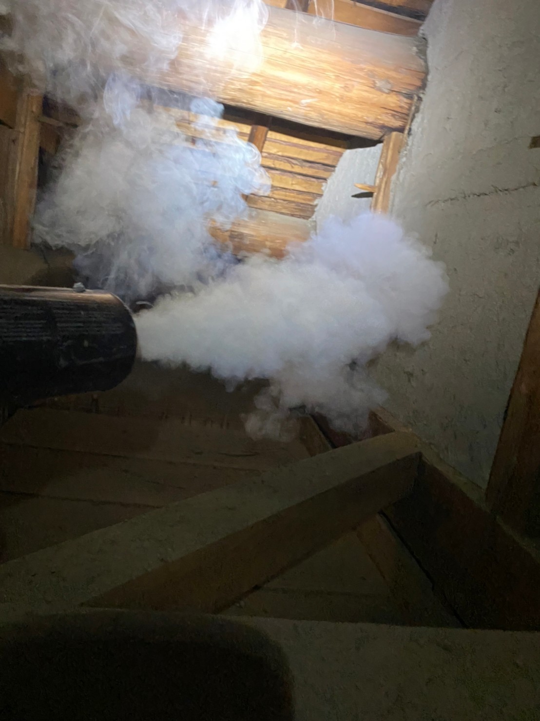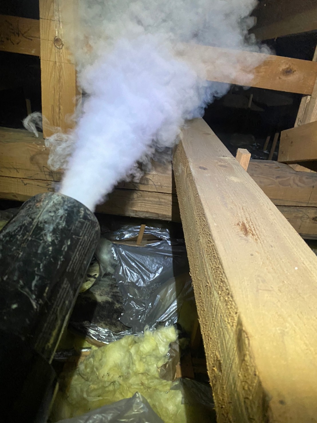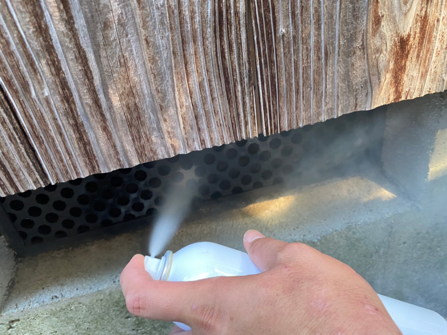 まずは、燻煙剤と呼ばれる薬剤を天井裏や床下に投入することで、イタチを追い出していきます。
