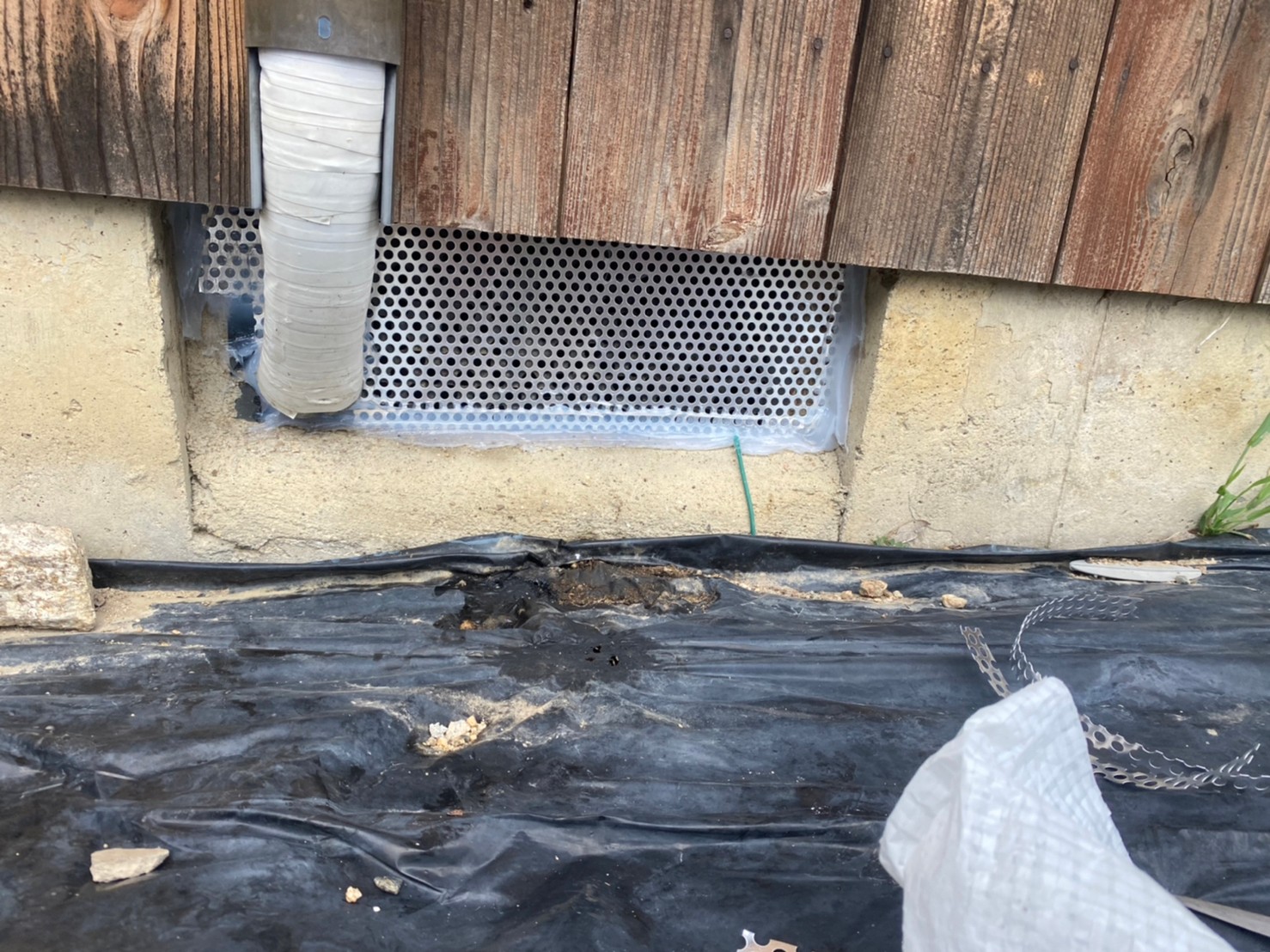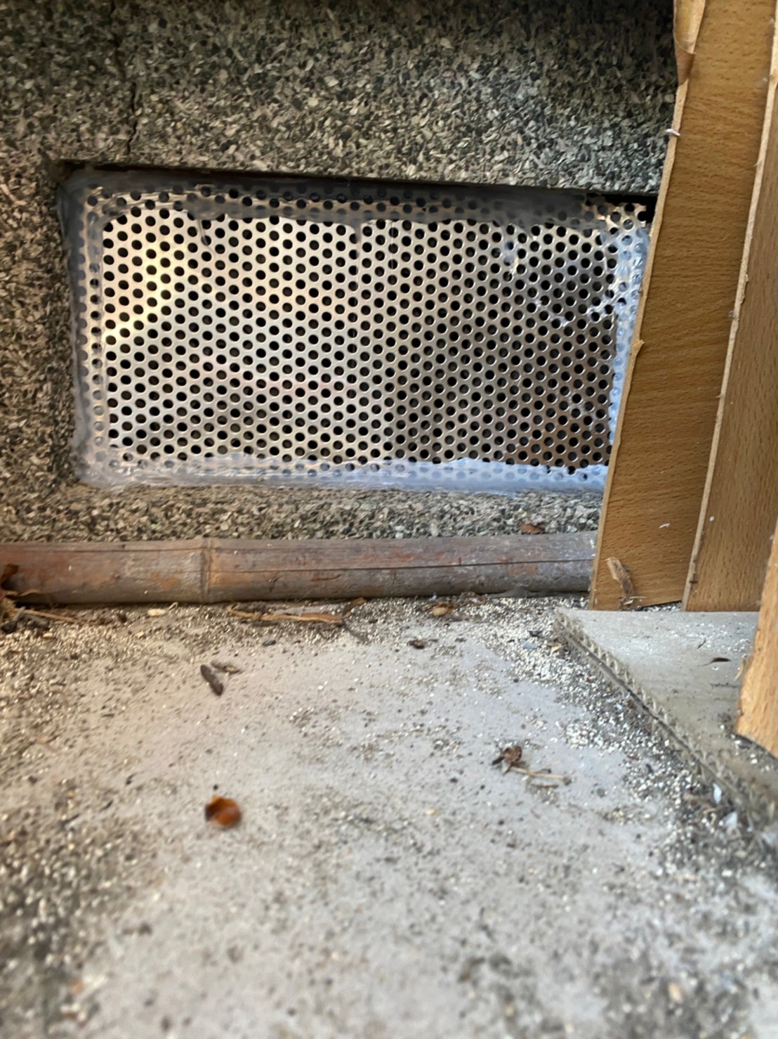 エアコン配管の隙間や床下通風口等がイタチの侵入経路と疑われました。