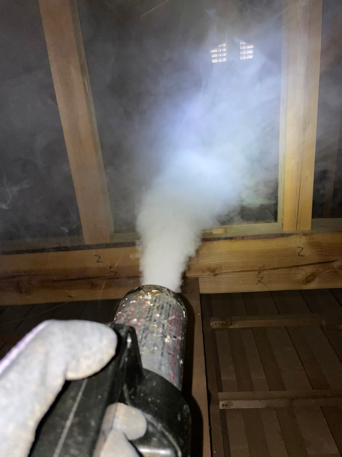 まずは、燻煙剤と呼ばれる薬剤を天井裏や床下に投入することで、イタチを追い出していきます。