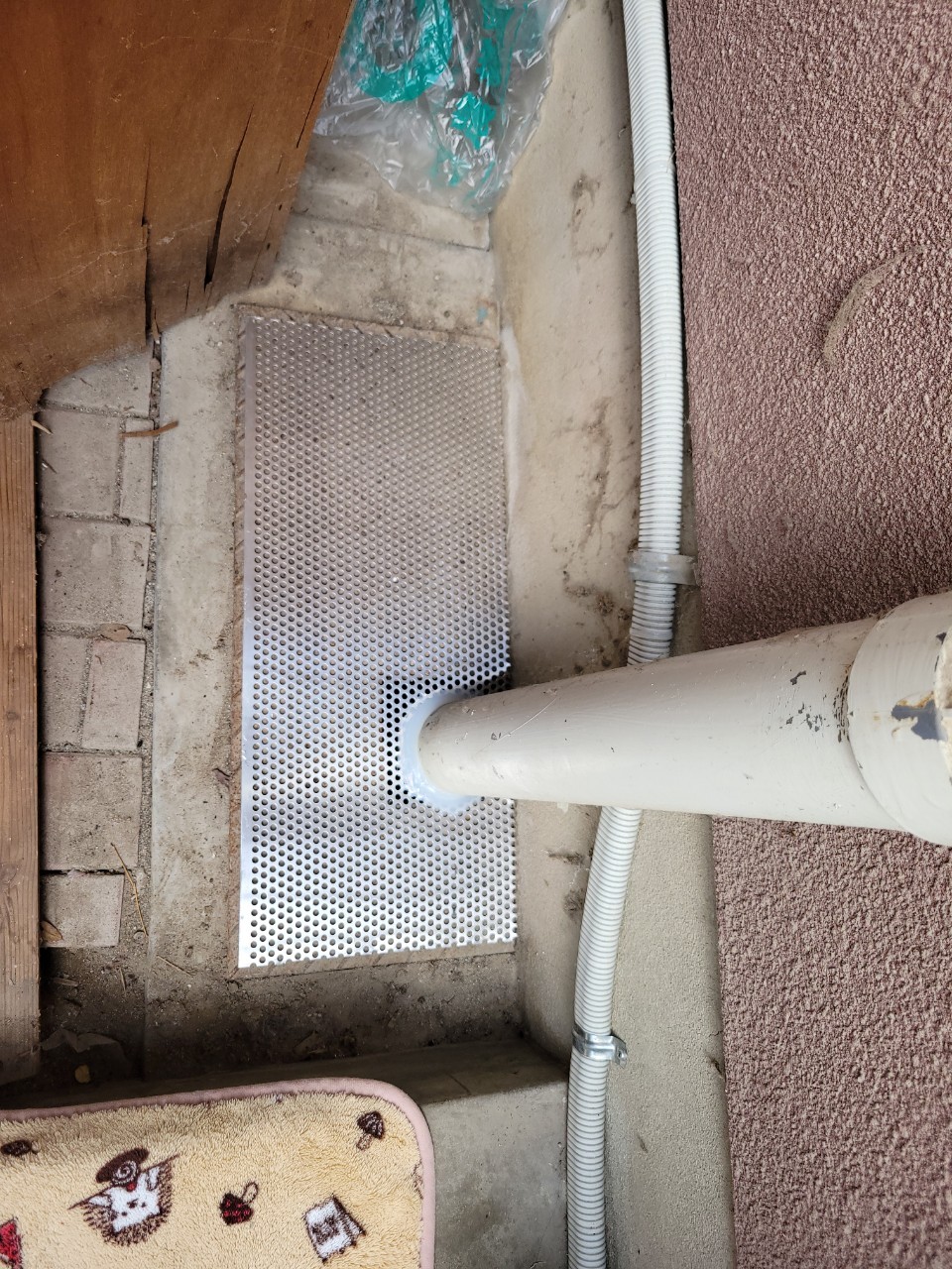 排水部や外壁の隙間等がイタチの侵入経路と疑われました。