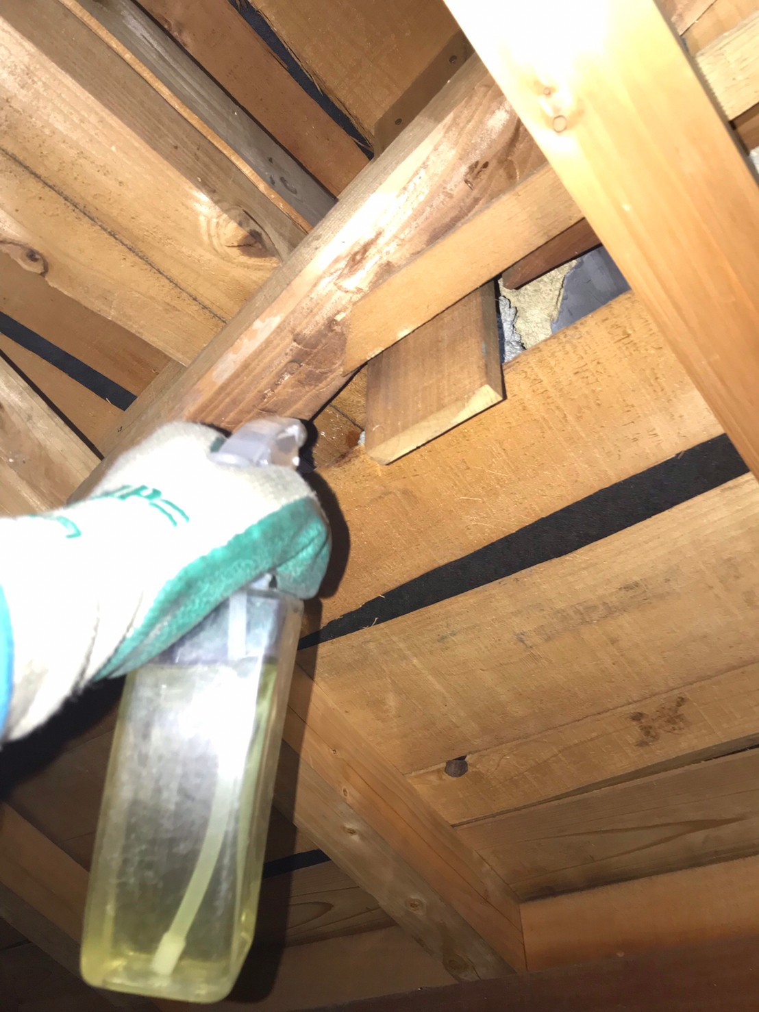イタチには帰巣本能がありますので、目立つ穴や割れ目の他、普段気が付かないような小さな隙間まで全て塞ぎました。