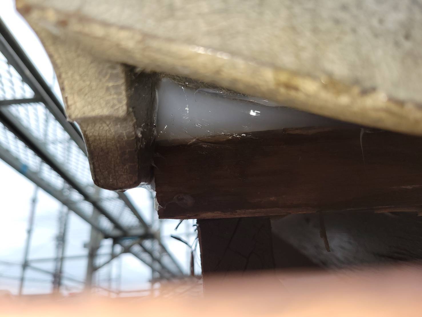 続いて、コウモリの再侵入を防ぐために、パンチングメタルや金網、コーキング剤などを用いて侵入経路の封鎖を行います。
