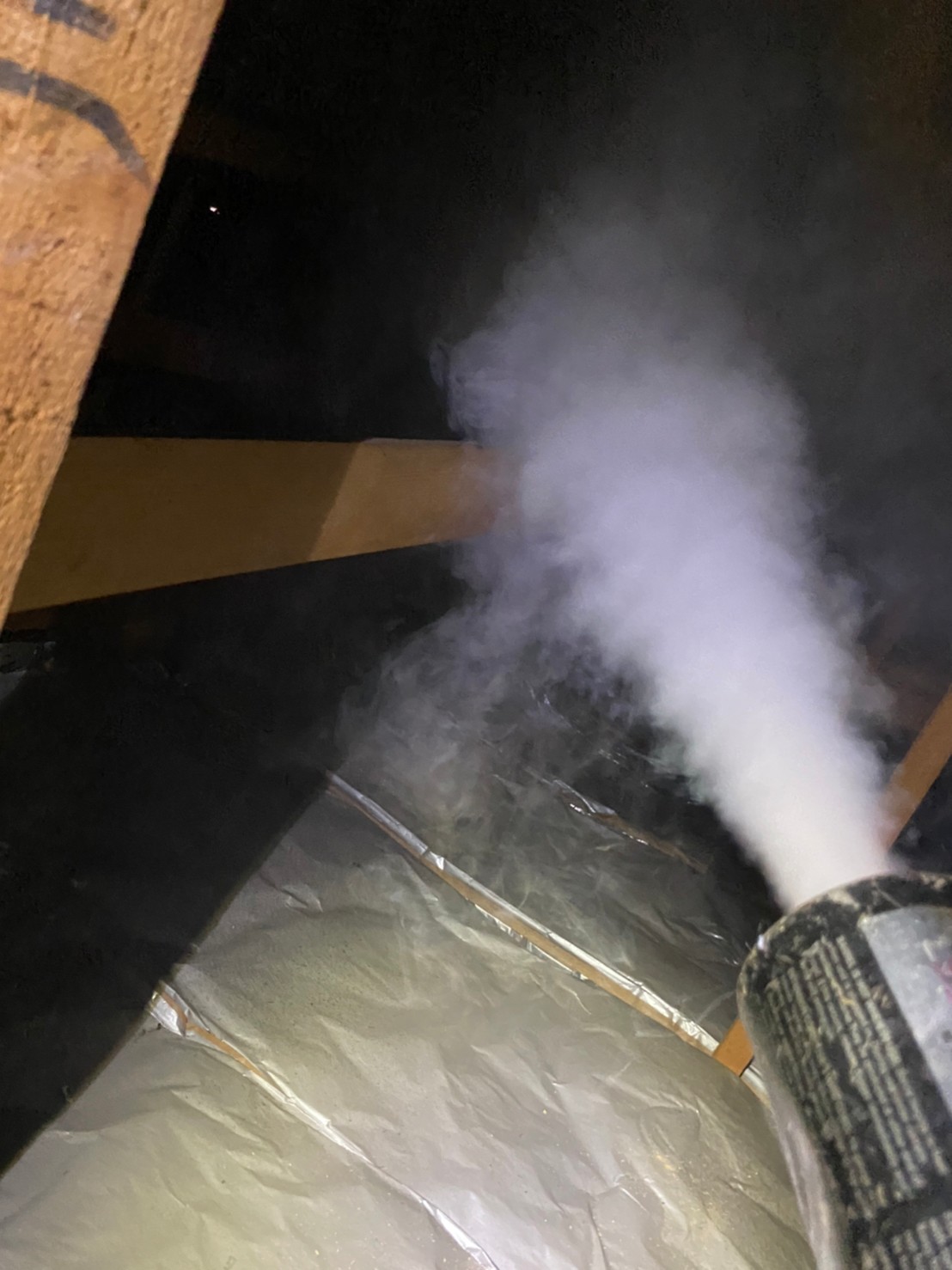 まずは、燻煙剤と呼ばれる薬剤を天井裏や床下に投入することで、コウモリを追い出していきます。