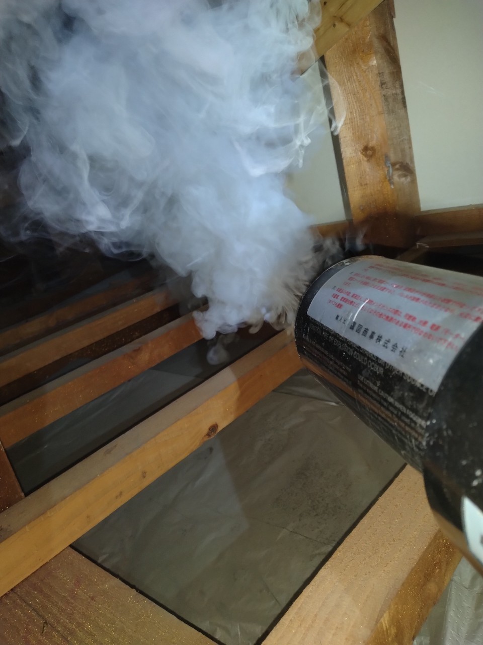 まずは、燻煙剤を使って屋内に潜んでいるネズミを追い出します。