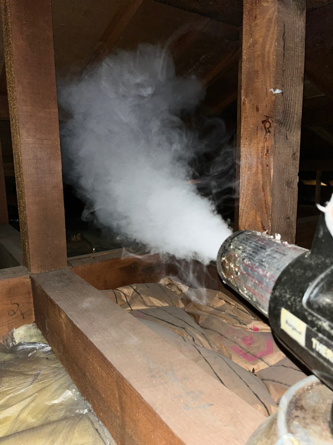 まずは、燻煙剤と呼ばれる薬剤を天井裏や床下に投入することで、イタチを追い出していきます。