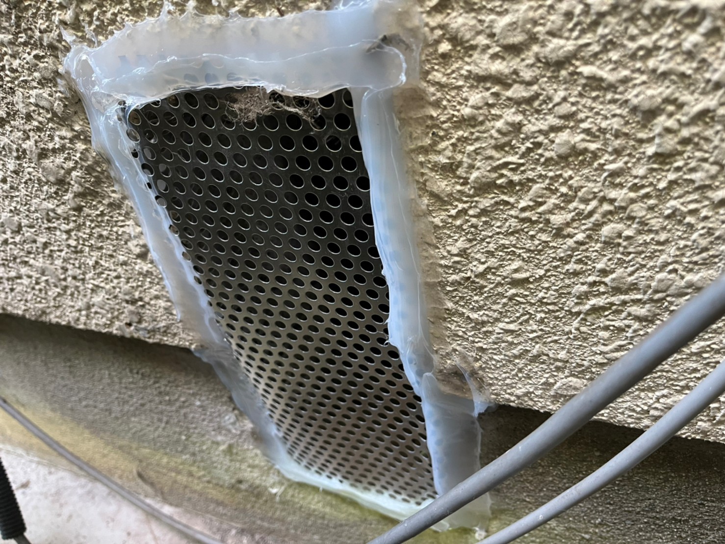 続いて、パンチングメタルや金網、コーキング剤などを用いて、あらゆる侵入経路を封鎖していきます。これによりイタチに限らず、他の害獣の再侵入も防ぐことができます。
