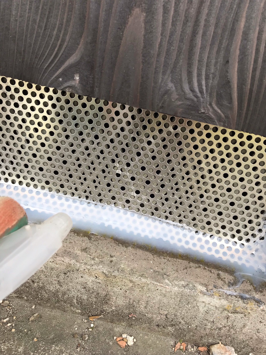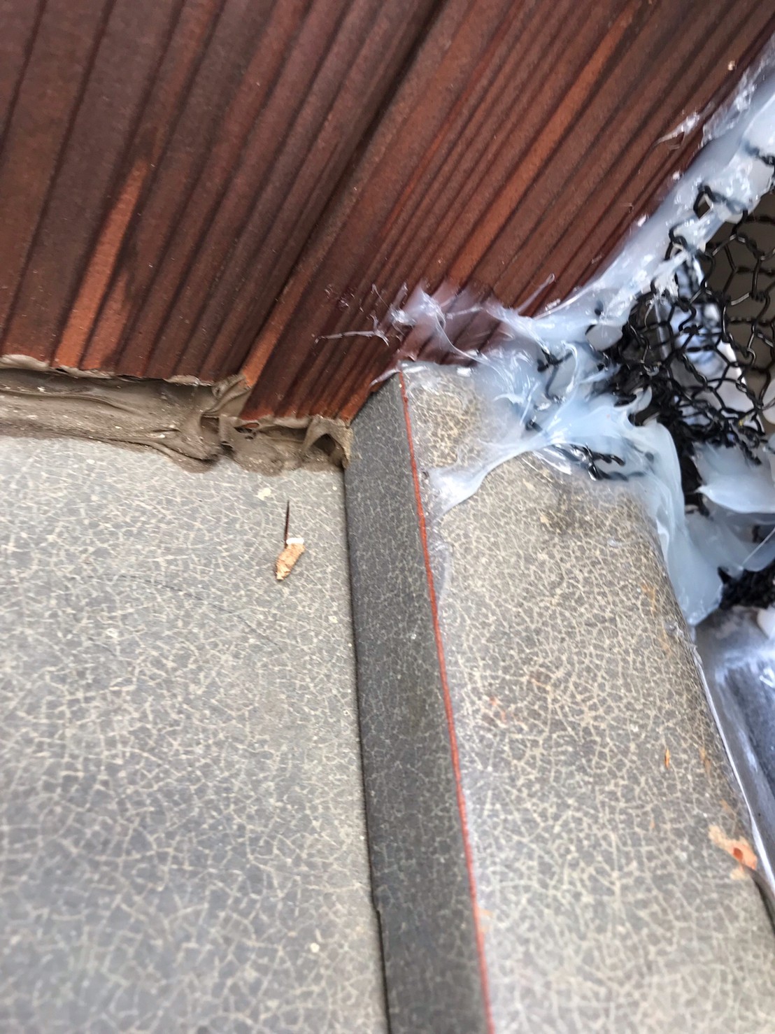 続いて、イタチの再侵入を防ぐために、パンチングメタルや金網、コーキング剤などを用いて侵入経路の封鎖を行います。
