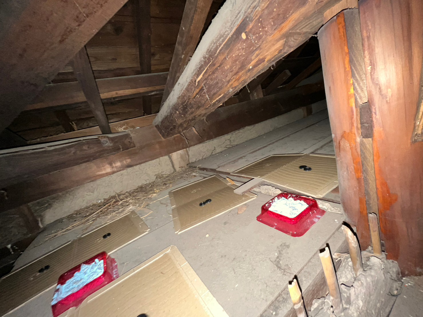 最後に、糞清掃や殺菌・消毒、マーキング消臭、ノミ・ダニ駆除、毒エサ・トラップ設置といった残りの作業を行い、駆除~再発防止までの工程が全て終了します。