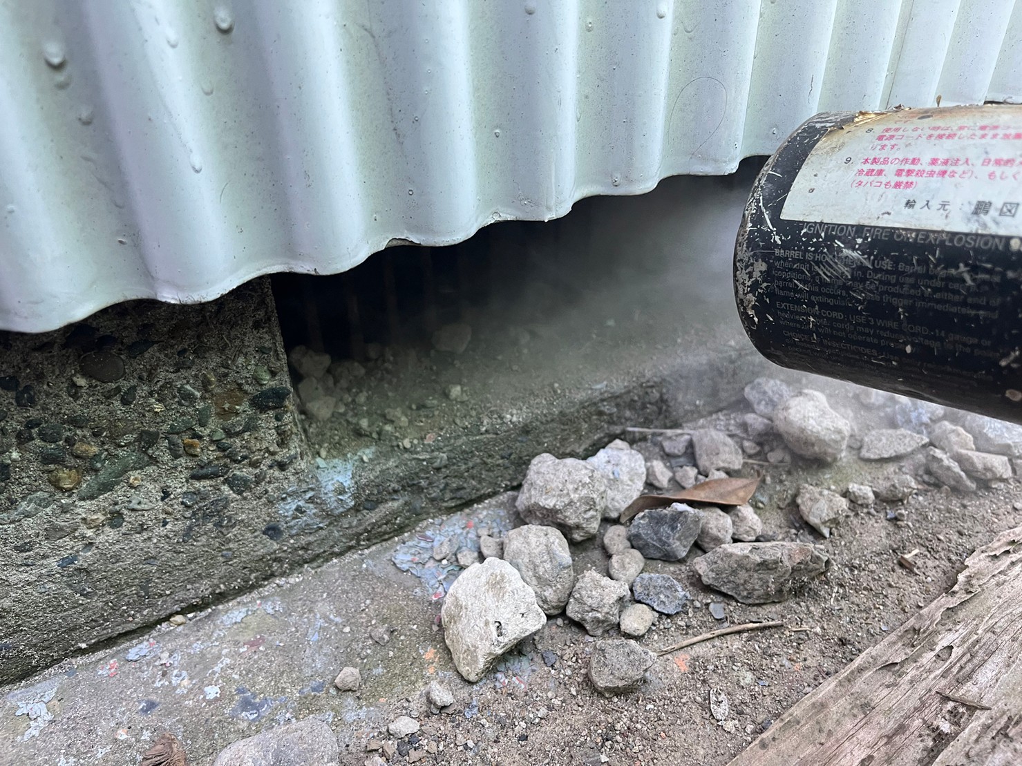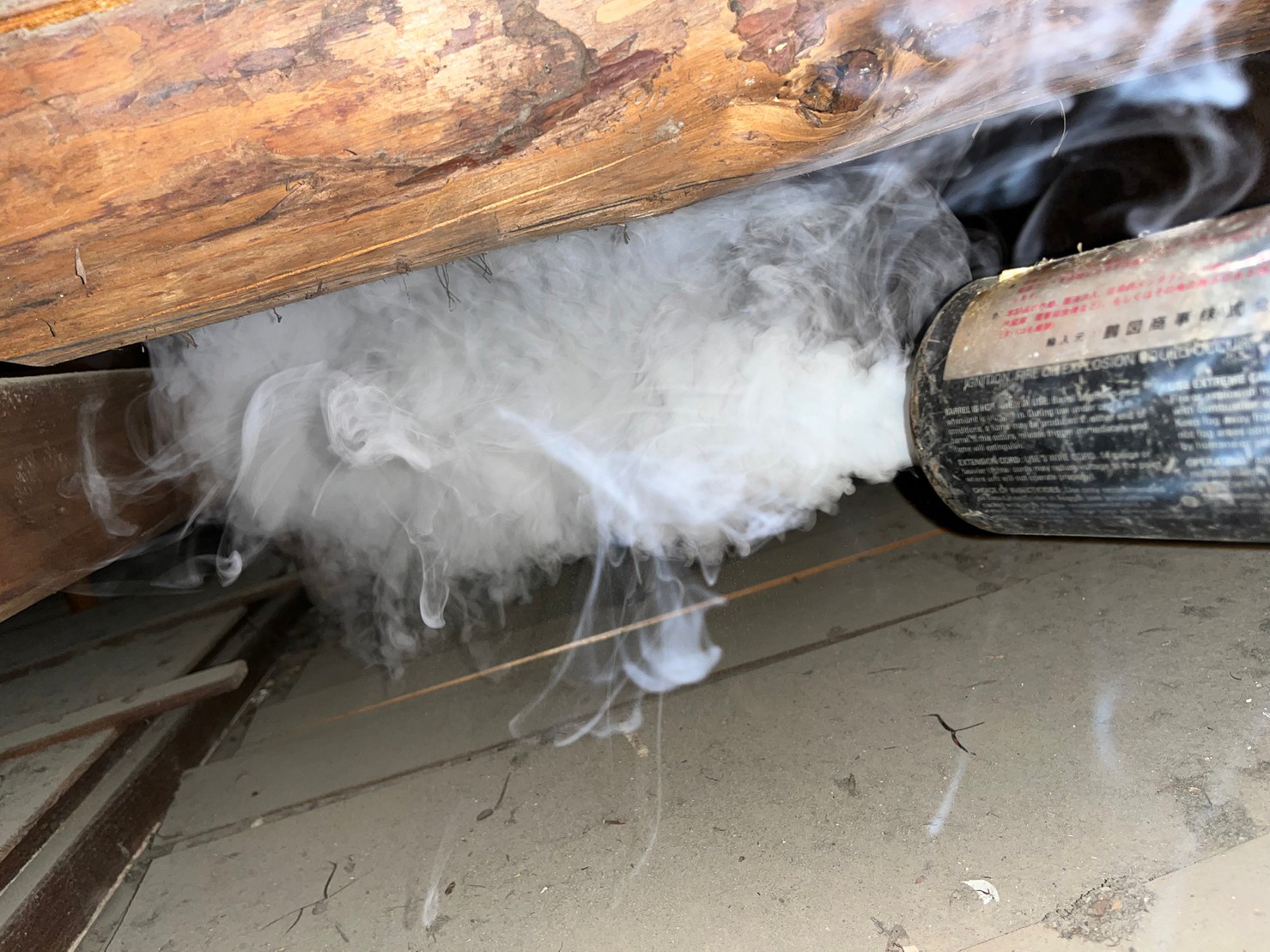 まずは、燻煙剤と呼ばれる薬剤を天井裏や床下に投入することで、ネズミを追い出していきます。