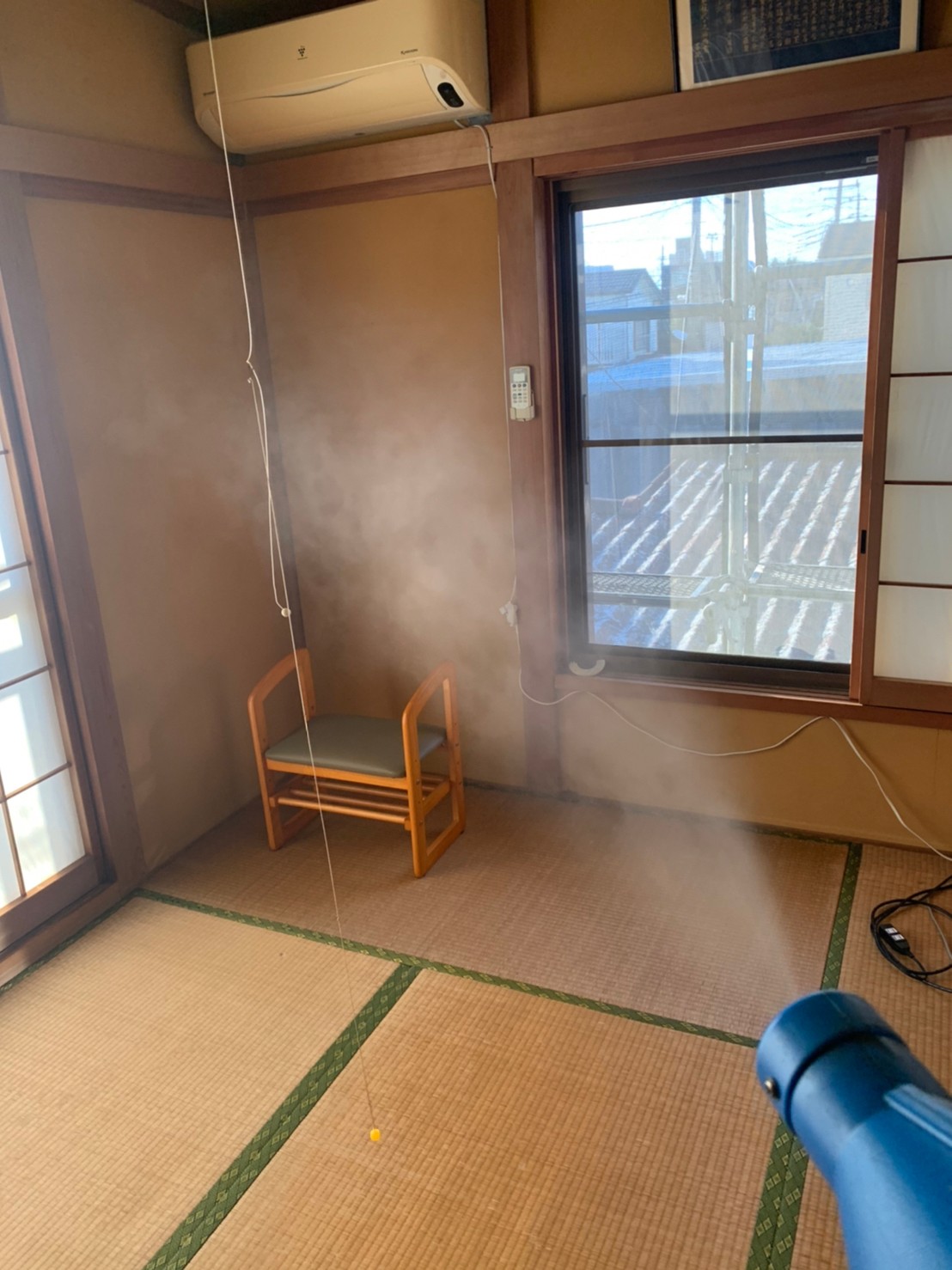 まずは、燻煙剤を使って屋内に潜んでいるコウモリを追い出します。