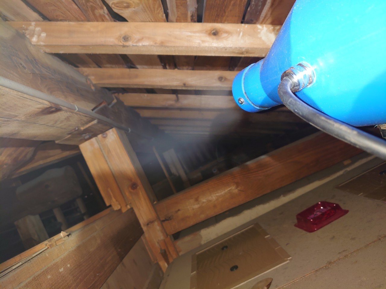 まずは、燻煙剤と呼ばれる薬剤を天井裏や床下に投入することで、ネズミを追い出していきます。