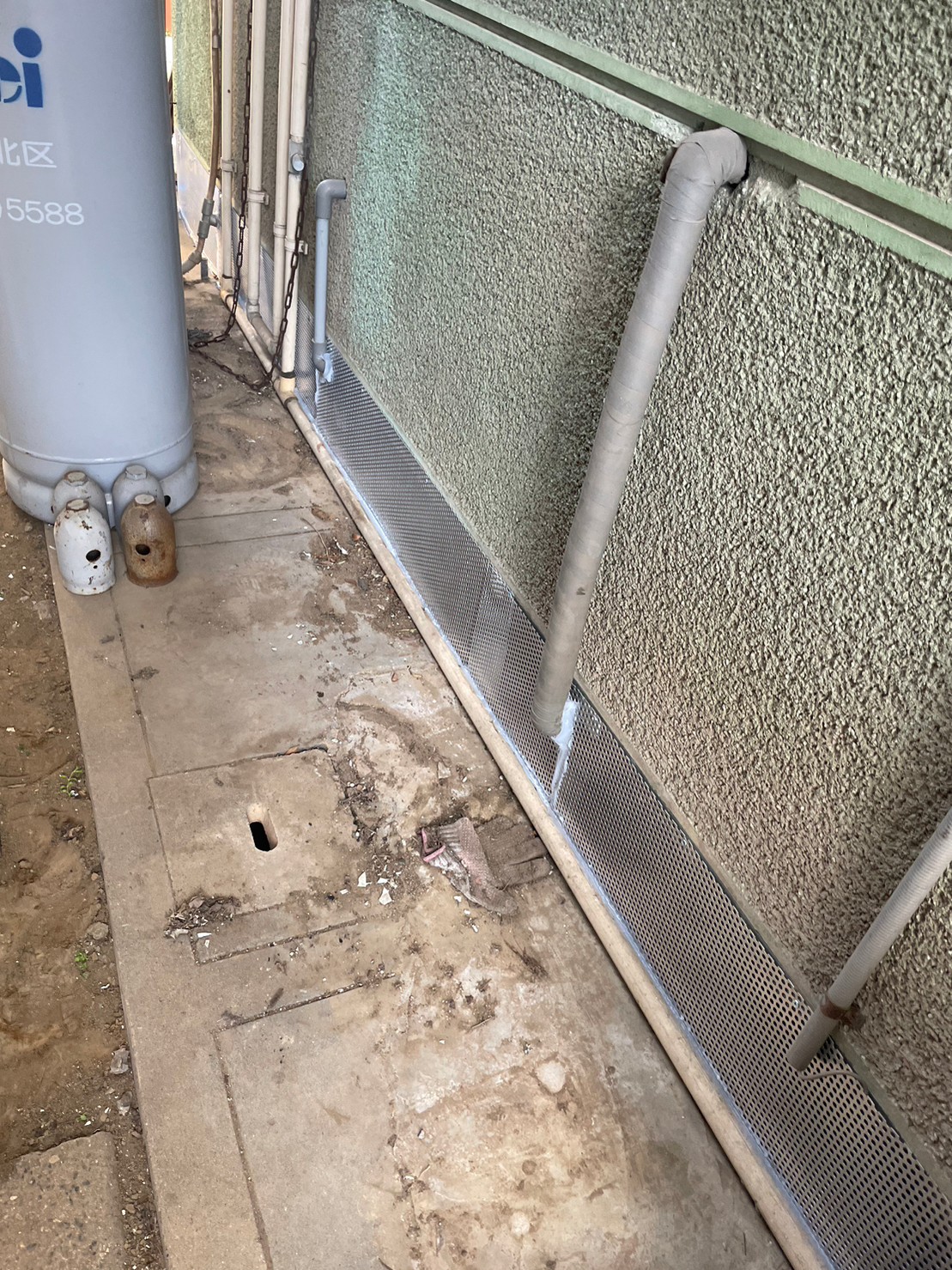 外壁の隙間やエアコン配管の隙間、床下通風口等がネズミの侵入経路と疑われました。