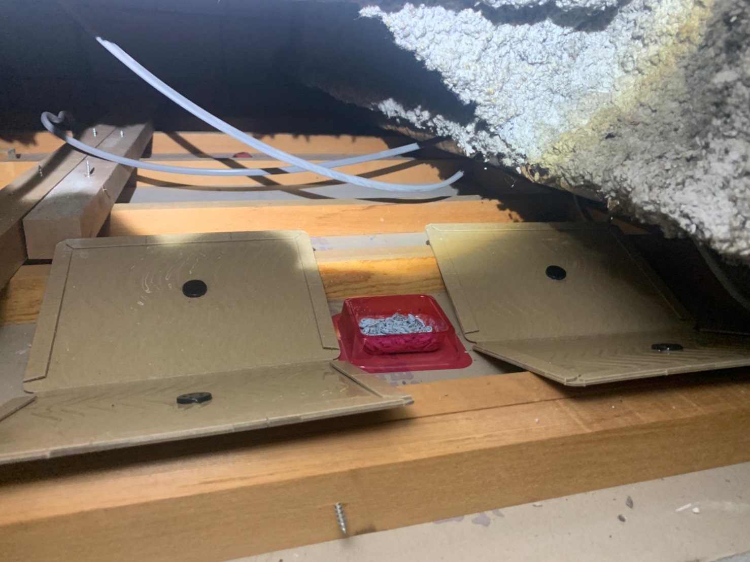 最後に、糞清掃や殺菌・消毒、マーキング消臭、ノミ・ダニ駆除、毒エサ・トラップ設置といった残りの作業を行い、駆除~再発防止までの工程が全て終了します。