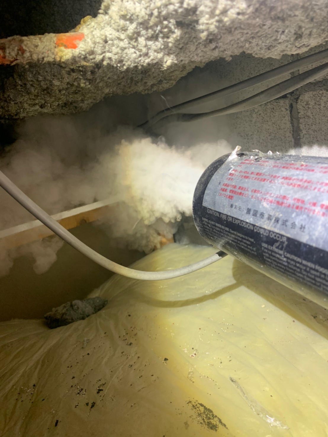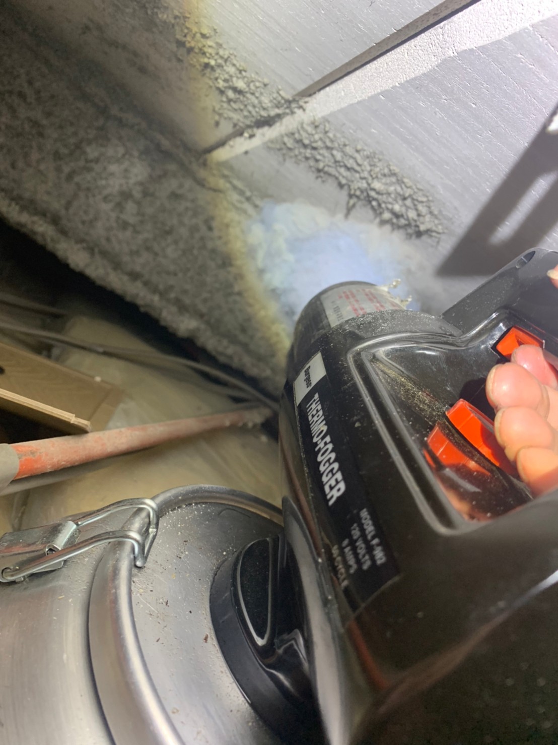 まずは、燻煙剤と呼ばれる薬剤を天井裏や床下に投入することで、ネズミを追い出していきます。