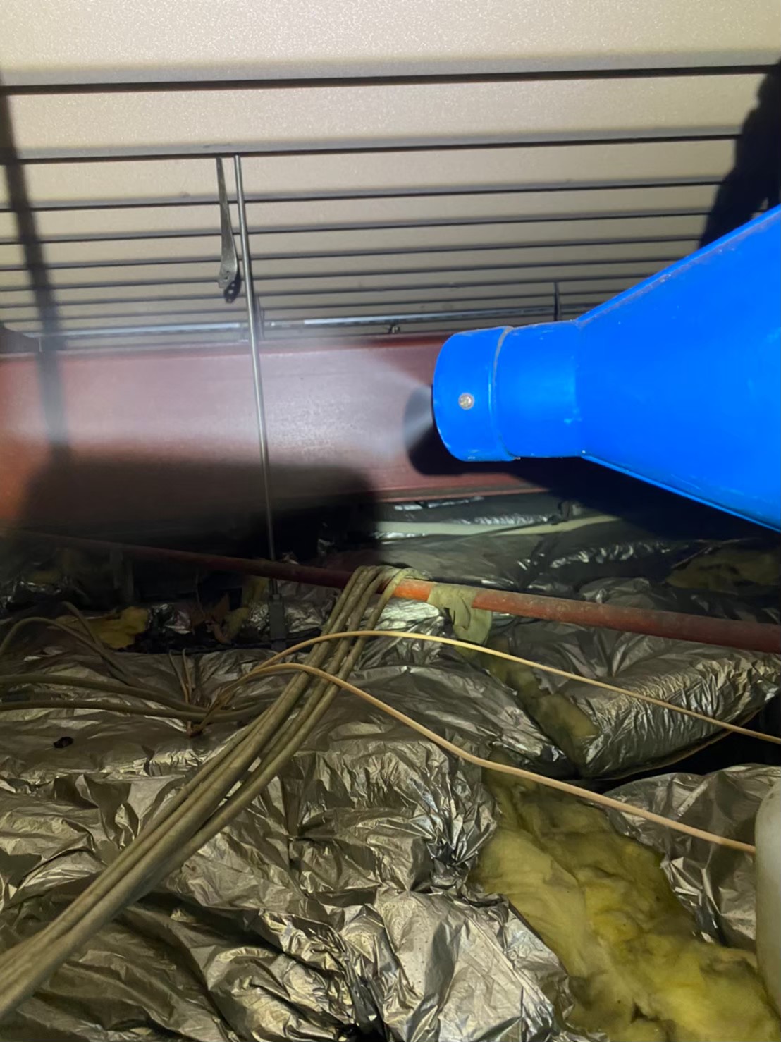 燻煙材などを使用してさまざまな場所からハクビシンを追い出します。そして糞などの清掃や消毒、消臭します。忌避剤を設置して、建物内への空気の循環は損なわれないように、パンチングメタルや金網などでしっかりと侵入口を封鎖しました。