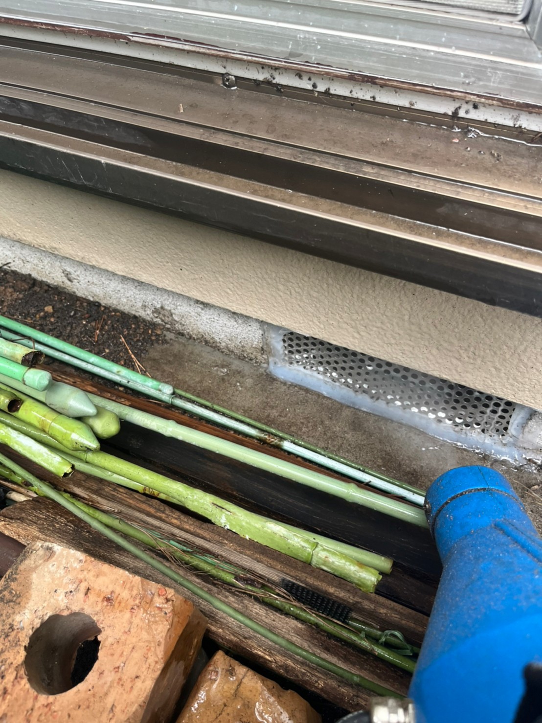 続いて、ネズミの再侵入を防ぐために、パンチングメタルや金網、コーキング剤などを用いて侵入経路の封鎖を行います。