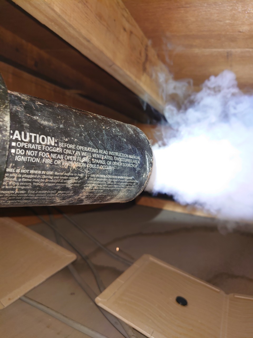 まずは、燻煙剤と呼ばれる薬剤を天井裏や床下に投入することで、ネズミを追い出していきます。