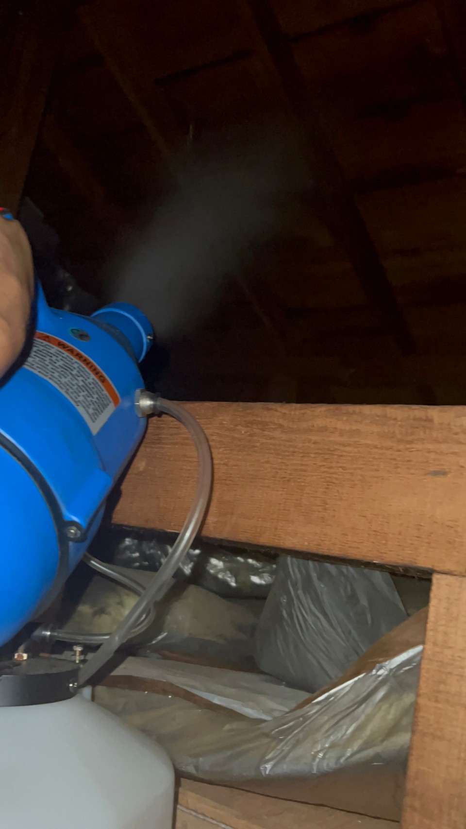 まずは、燻煙剤と呼ばれる薬剤を天井裏や床下に投入することで、コウモリを追い出していきます。