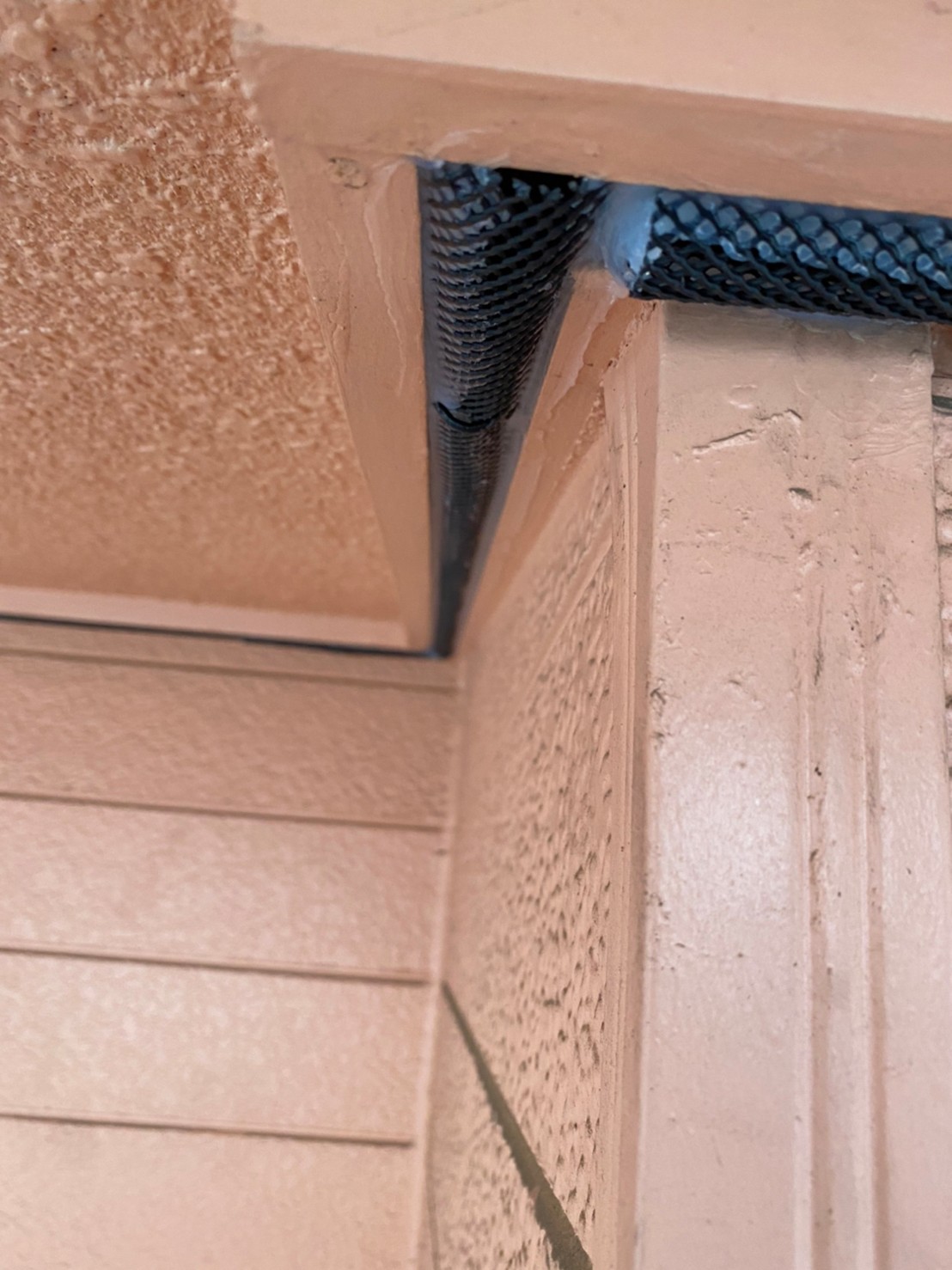 続いて、パンチングメタルや金網、コーキング剤などを用いて、あらゆる侵入経路を封鎖していきます。これによりネズミ、コウモリに限らず、他の害獣の再侵入も防ぐことができます。