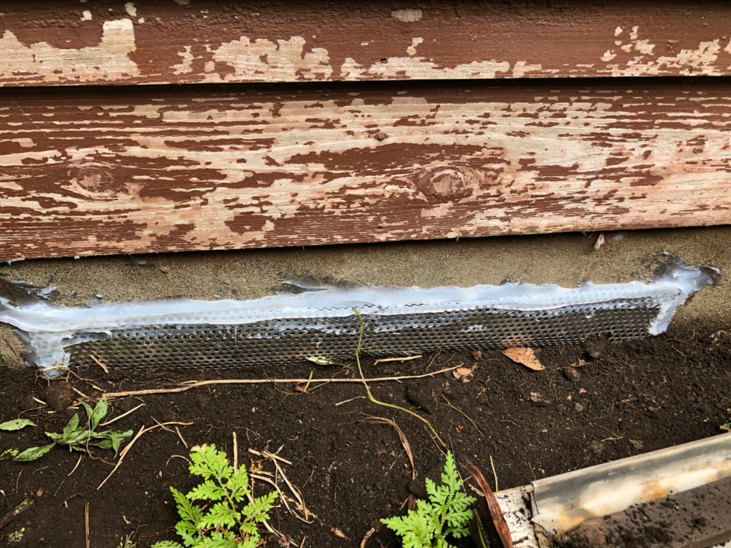 続いて、ネズミの再侵入を防ぐために、パンチングメタルや金網、コーキング剤などを用いて侵入経路の封鎖を行います。