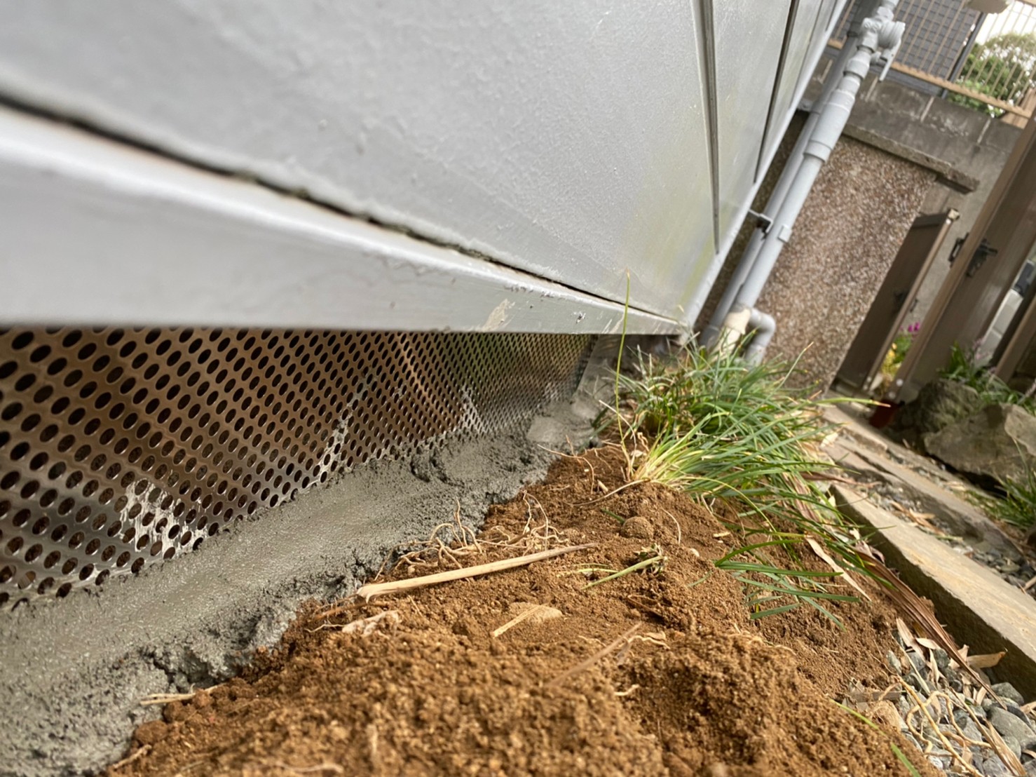 続いて、パンチングメタルや金網、コーキング剤などを用いて、あらゆる侵入経路を封鎖していきます。これによりネズミに限らず、他の害獣の再侵入も防ぐことができます。