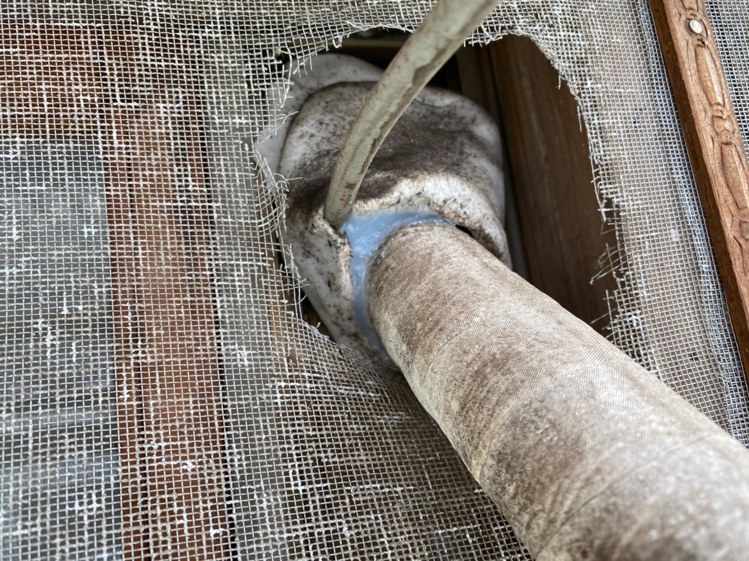 床下通風口やエアコン配管引き込み部等がネズミの侵入経路と疑われました。