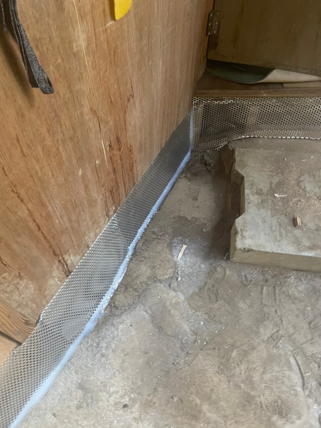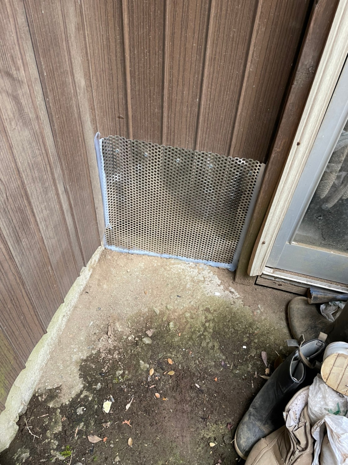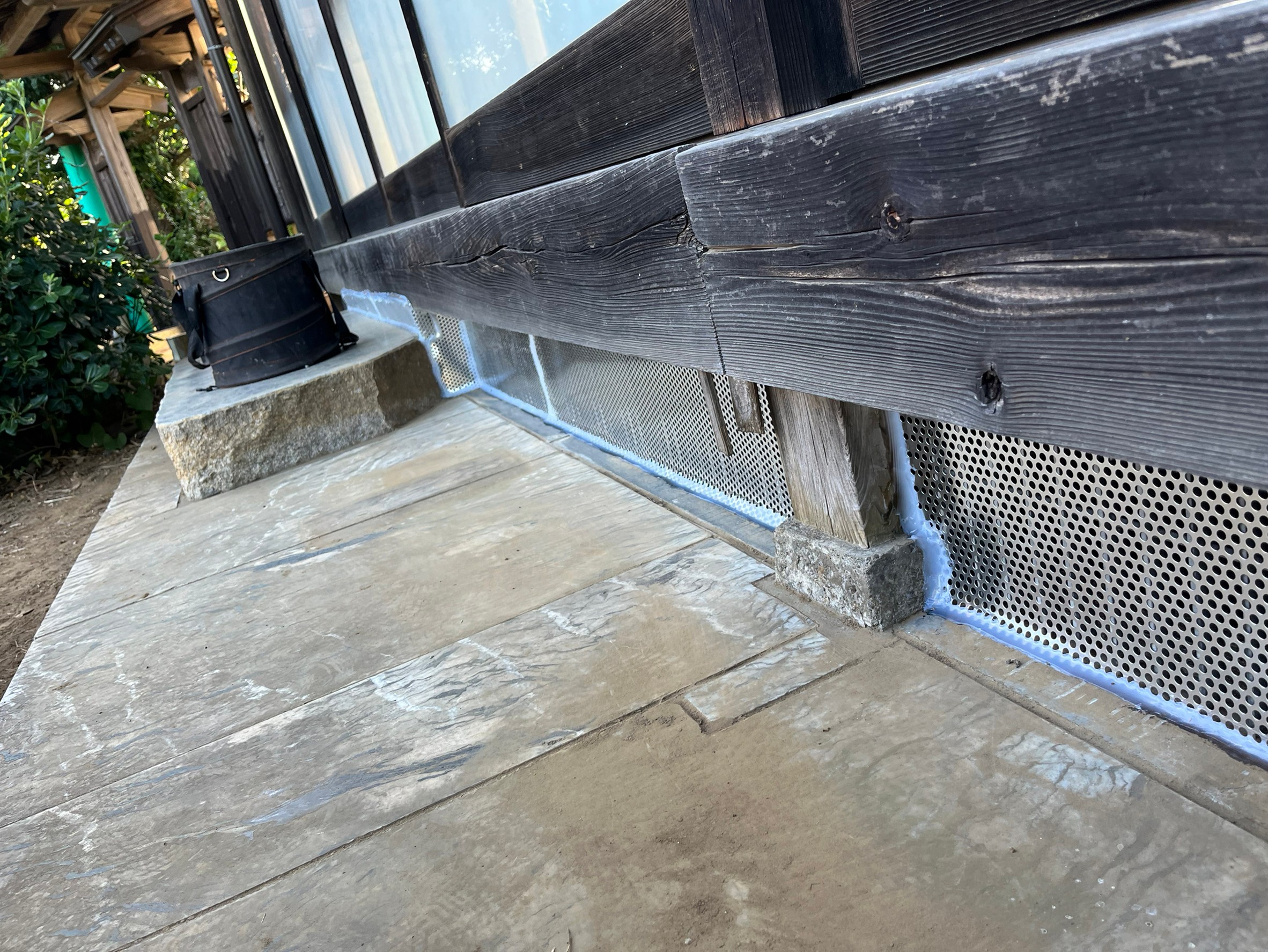 続いて、パンチングメタルや金網、コーキング剤などを用いて、あらゆる侵入経路を封鎖していきます。これによりネズミに限らず、他の害獣の再侵入も防ぐことができます。