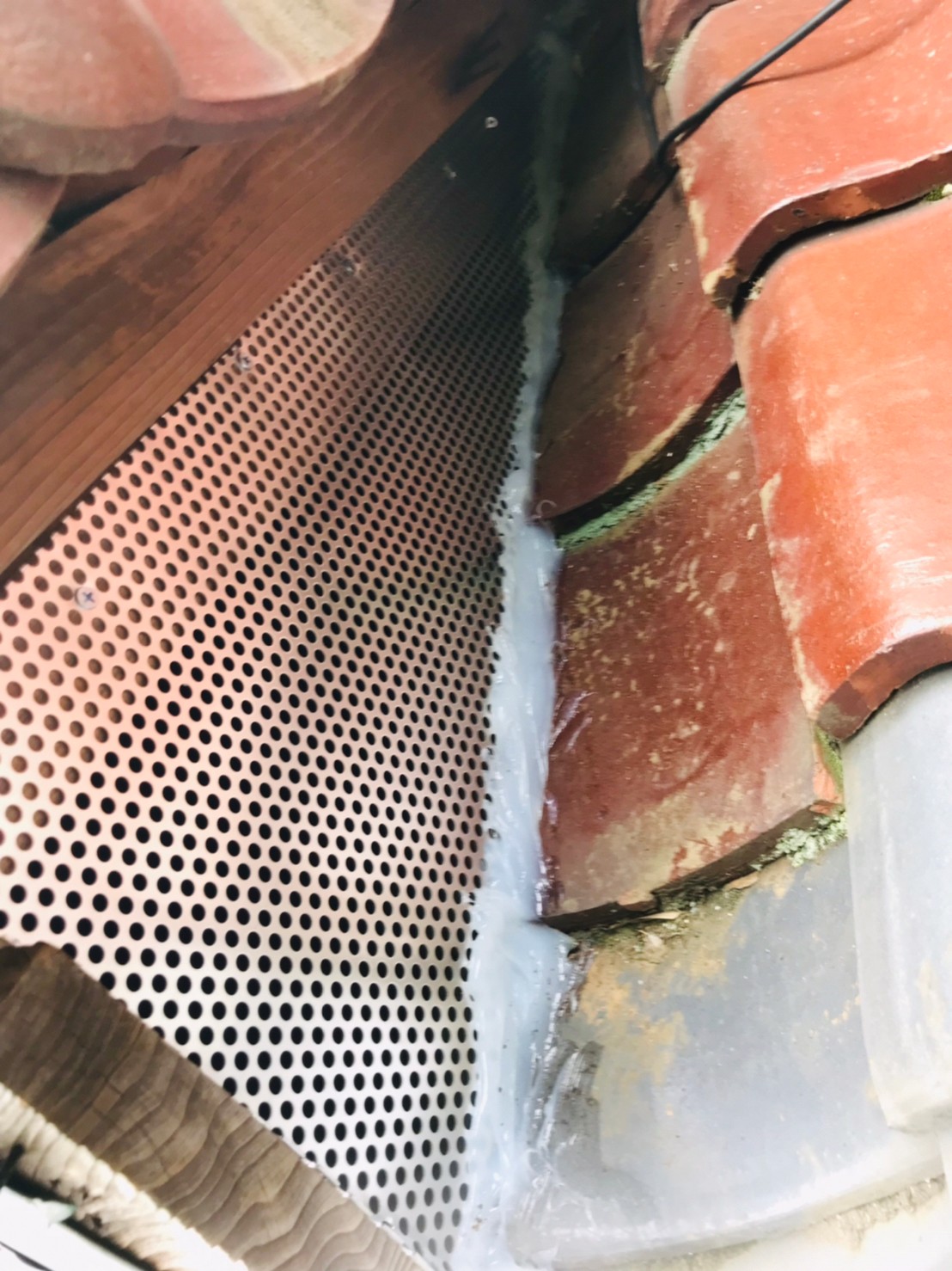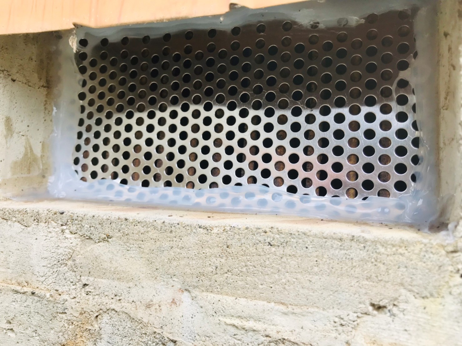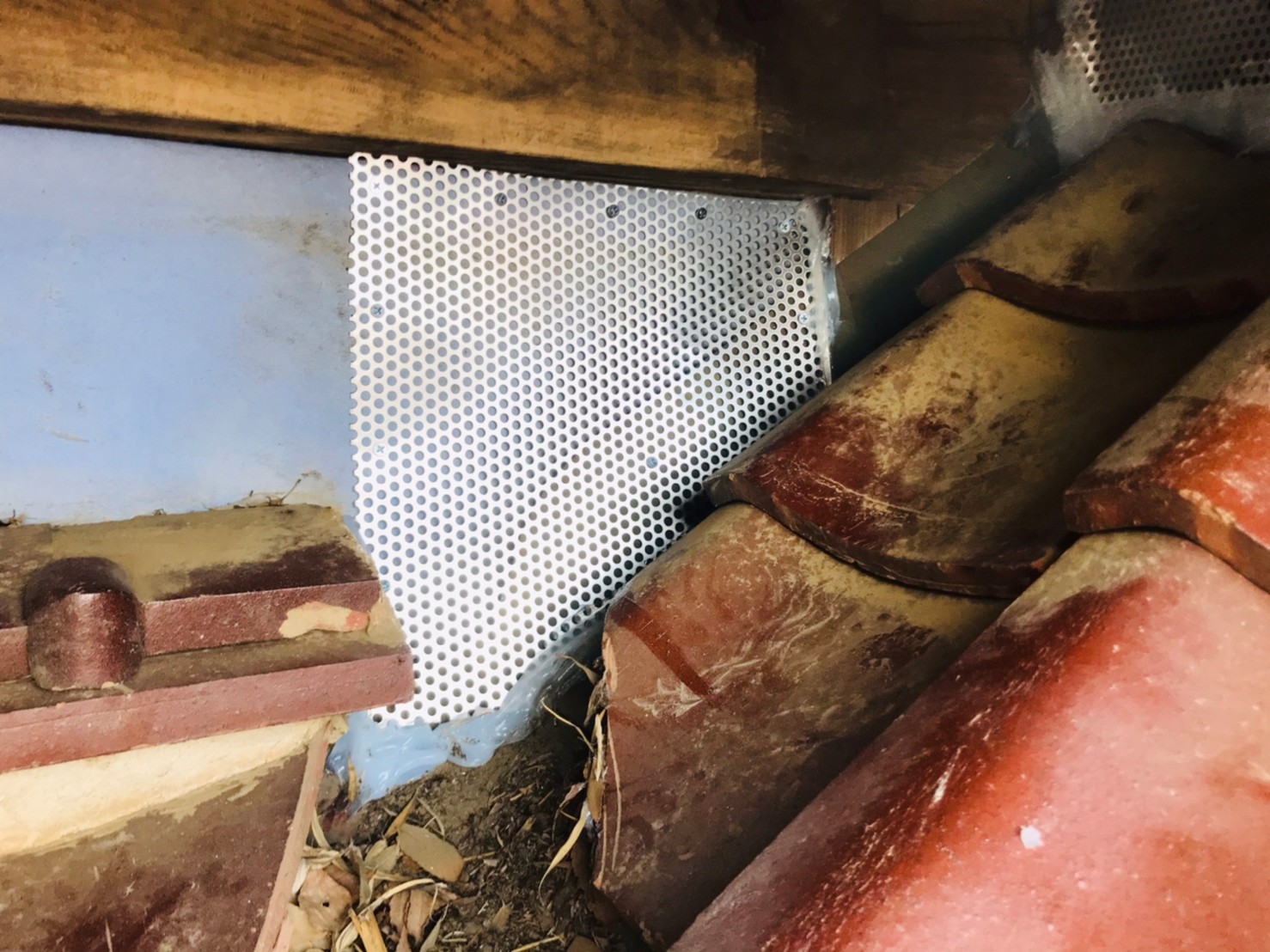 続いて、パンチングメタルや金網、コーキング剤などを用いて、あらゆる侵入経路を封鎖していきます。これによりアライグマに限らず、他の害獣の再侵入も防ぐことができます。