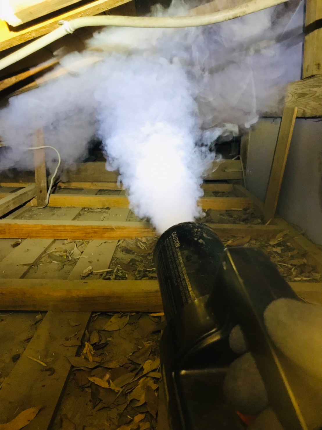 まずは、アライグマの巣がある場所に点検口を作成し、燻煙剤と呼ばれる薬剤を天井裏や床下に投入することで、アライグマを追い出していきます。