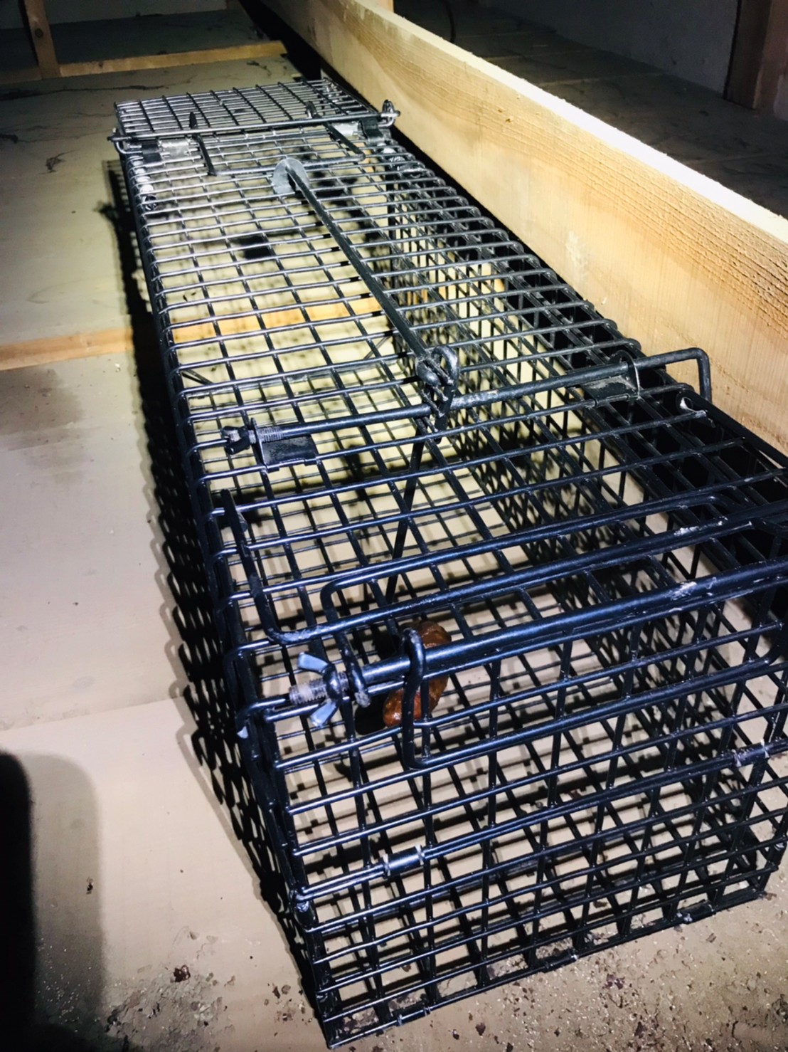 封鎖作業の後は、糞清掃やマーキング消臭、ノミ・ダニ駆除、点検口作成、罠かご設置といった残りの行程を順序良く行い、終了です。