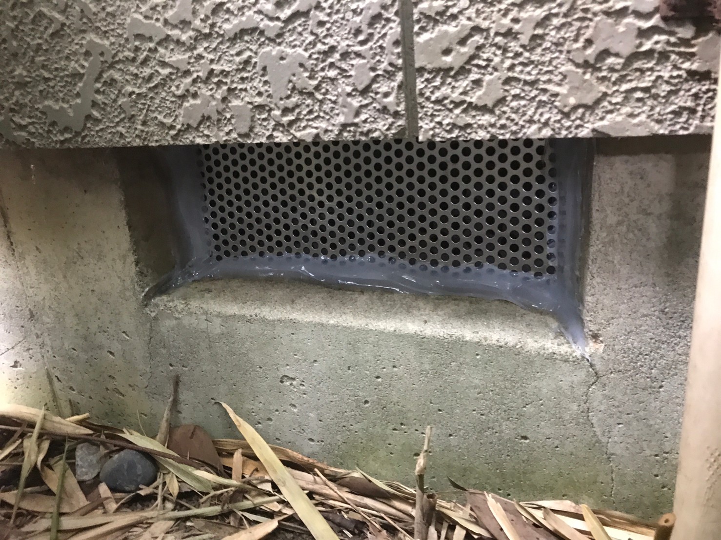 続いて、パンチングメタルや金網、コーキング剤などを用いて、あらゆる侵入経路を封鎖していきます。これによりネズミに限らず、他の害獣の再侵入も防ぐことができます。