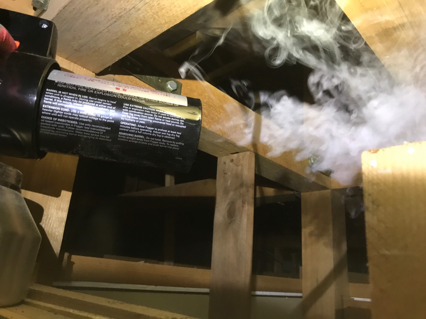まずは、燻煙剤と呼ばれる薬剤を天井裏や床下に投入することで、ネズミを追い出していきます。