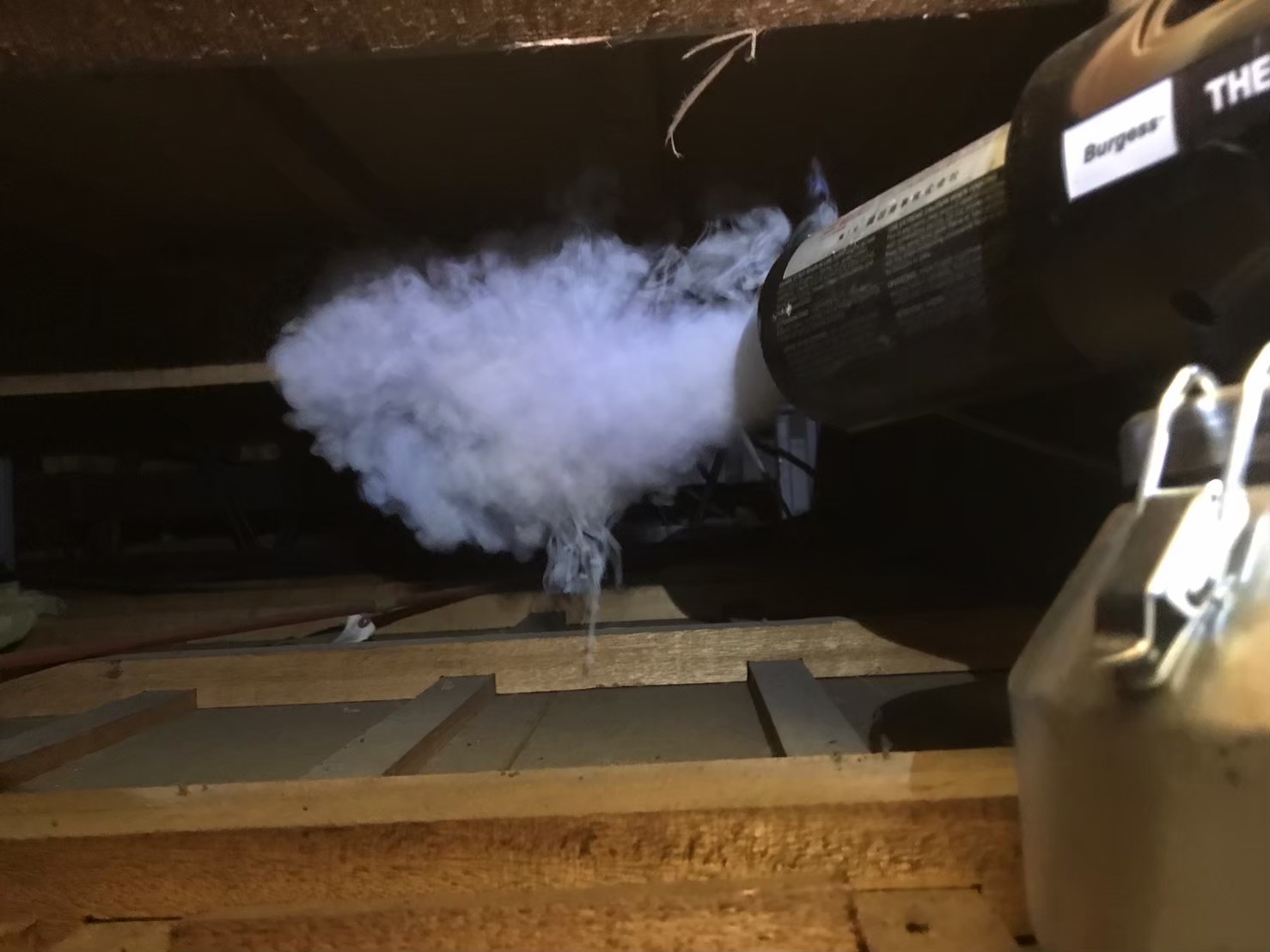 まずは、燻煙剤と呼ばれる薬剤を天井裏や床下に投入することで、ネズミを追い出していきます。