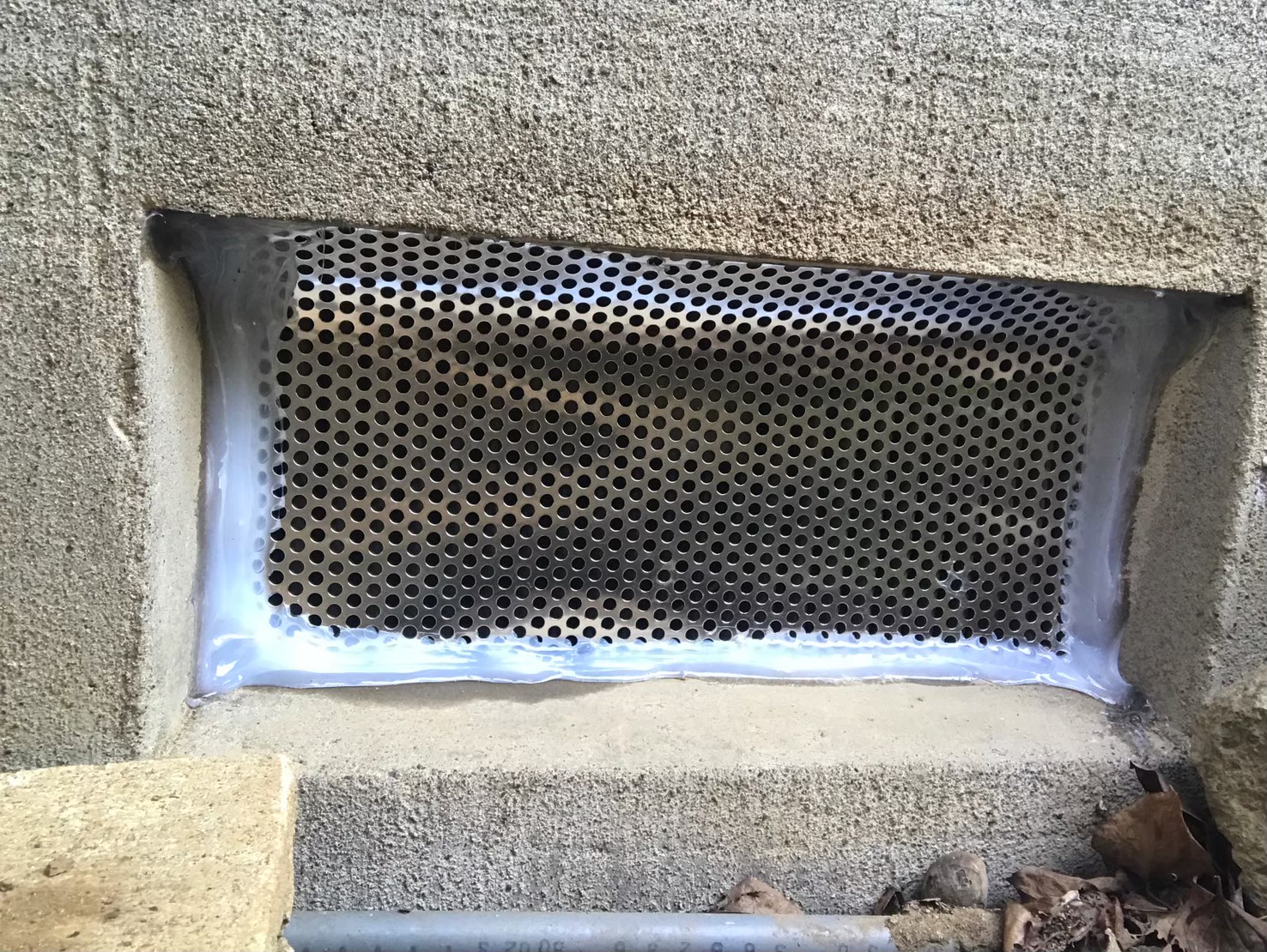 続いて、パンチングメタルや金網、コーキング剤などを用いて、あらゆる侵入経路を封鎖していきます。これによりネズミに限らず、他の害獣の再侵入も防ぐことができます。