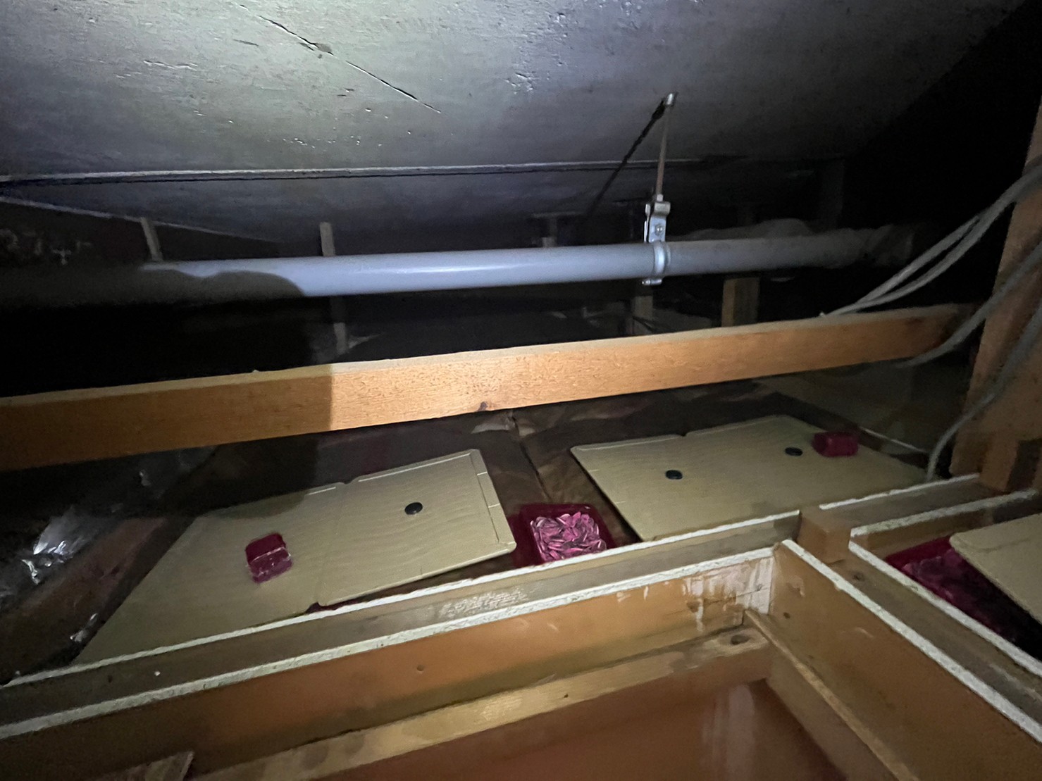 まずは、燻煙剤と呼ばれる薬剤を天井裏や床下に投入することで、ネズミを追い出していきます。