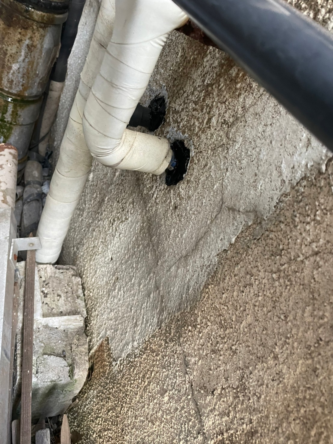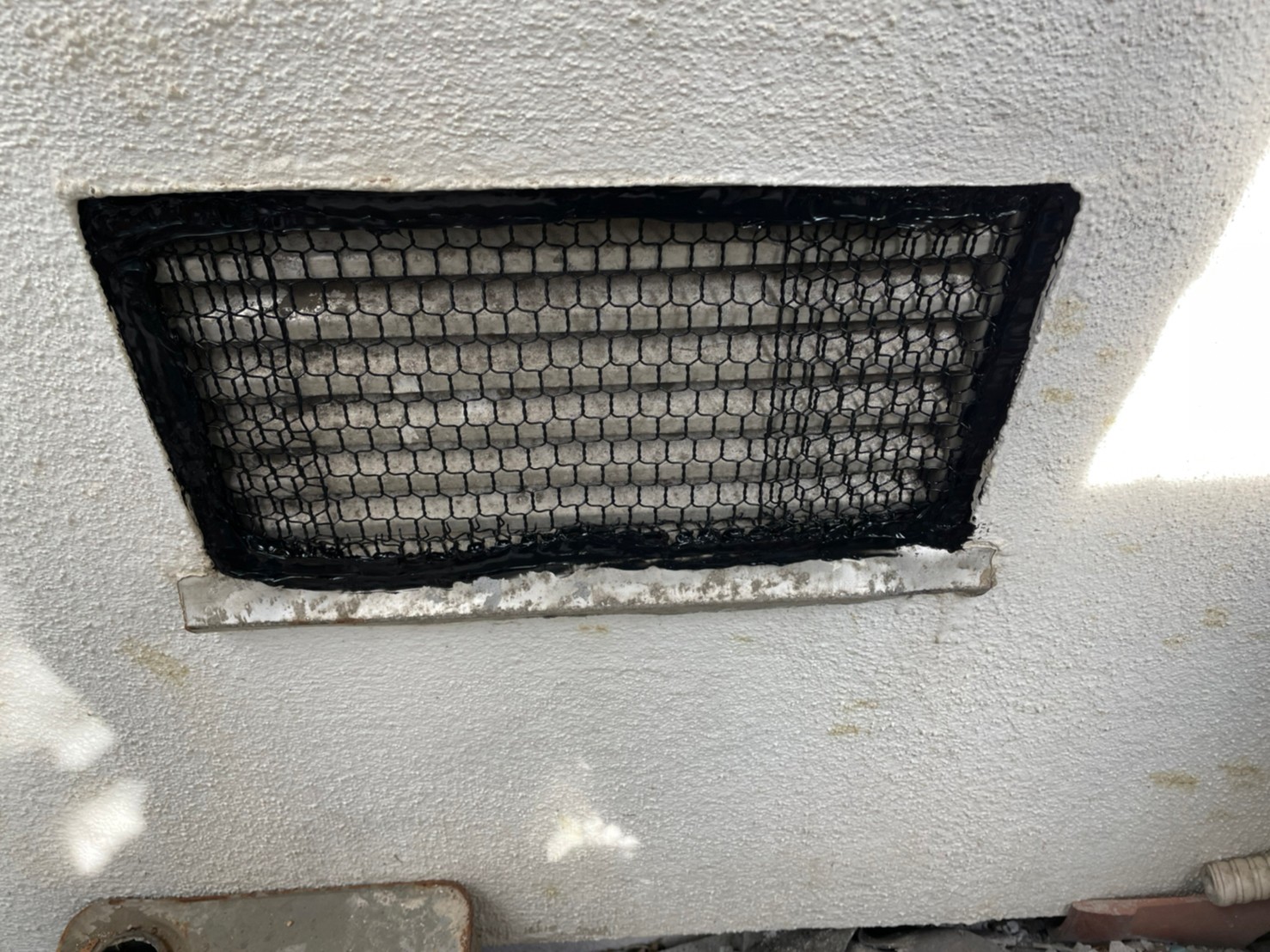 基礎の割れ目や床下通風口、エアコン配管の隙間等がネズミの侵入経路と疑われました。