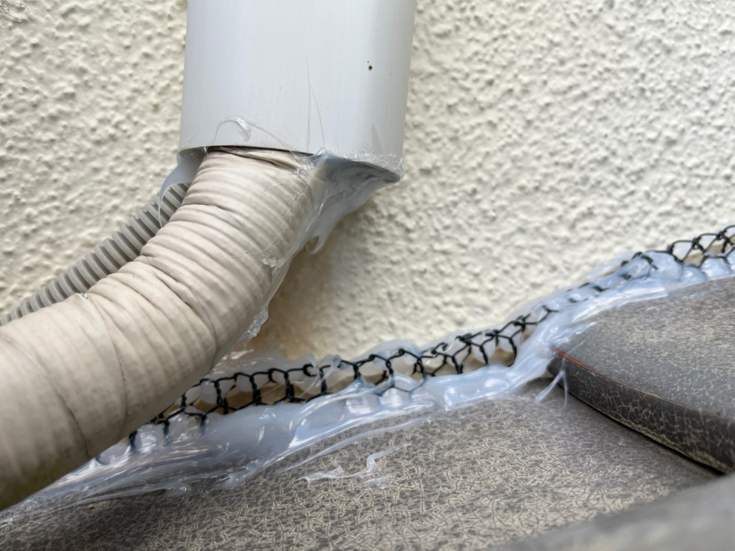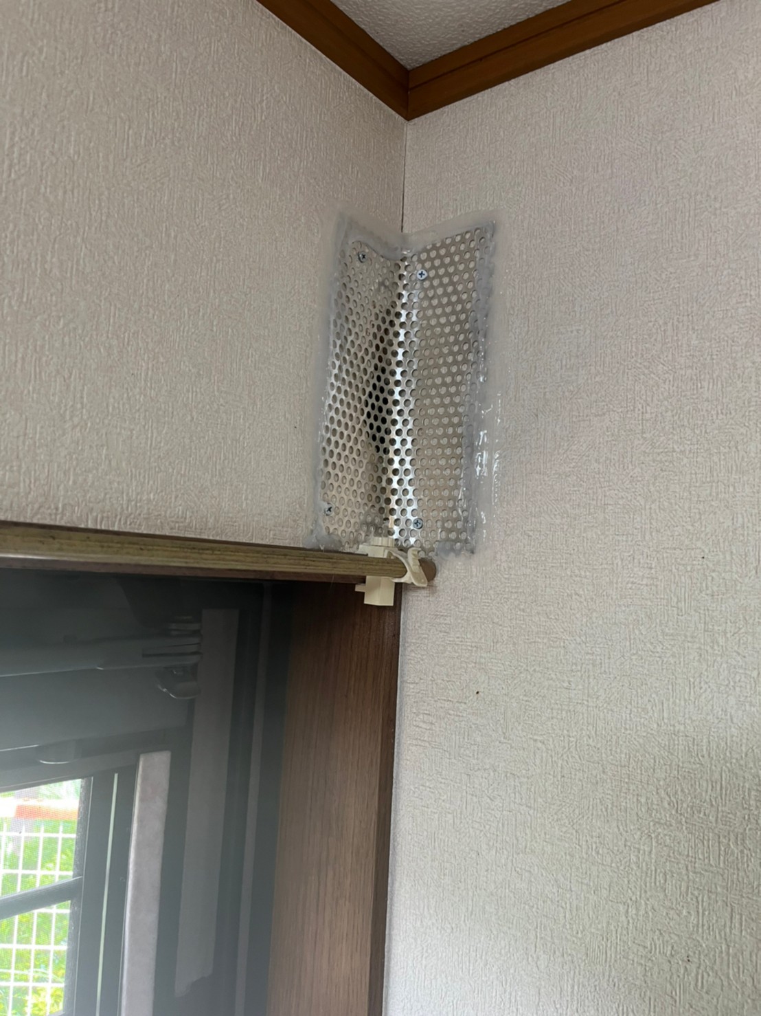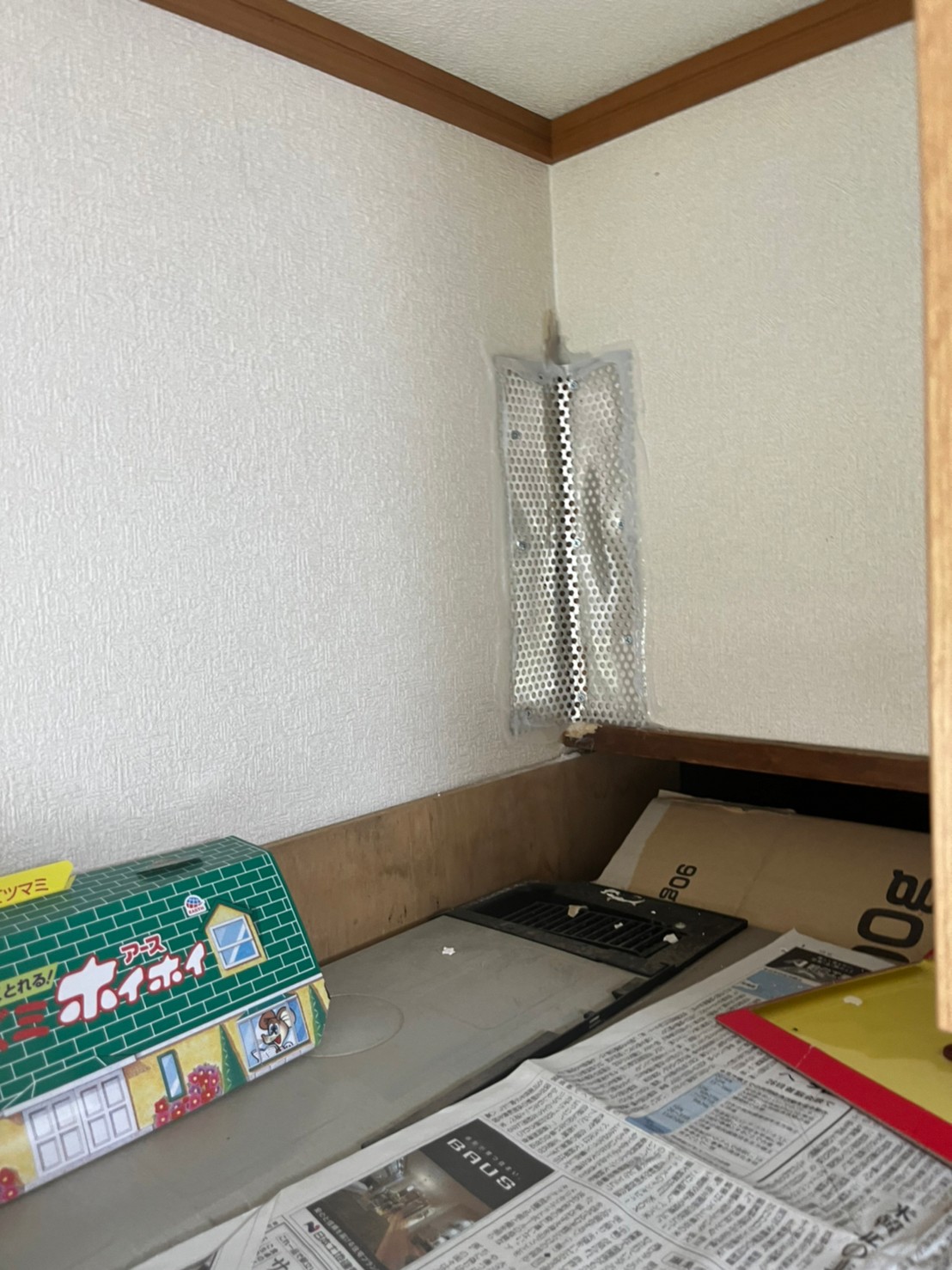 続いて、ネズミの再侵入を防ぐために、パンチングメタルや金網、コーキング剤などを用いて侵入経路の封鎖を行います。